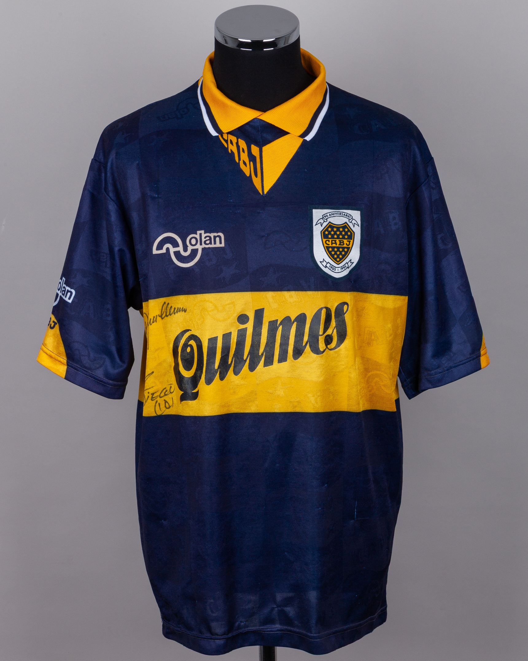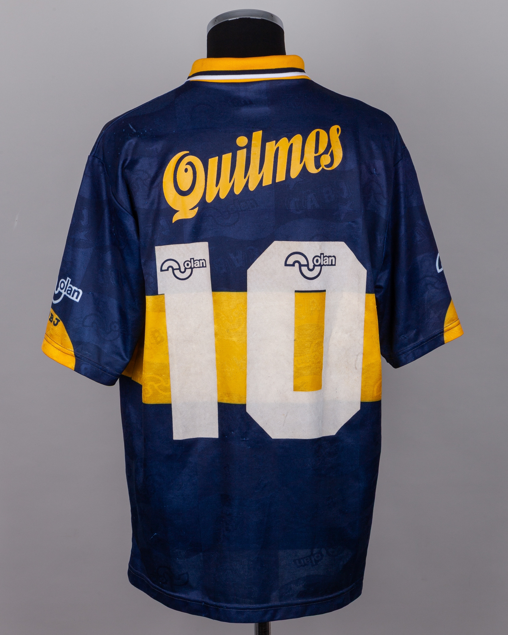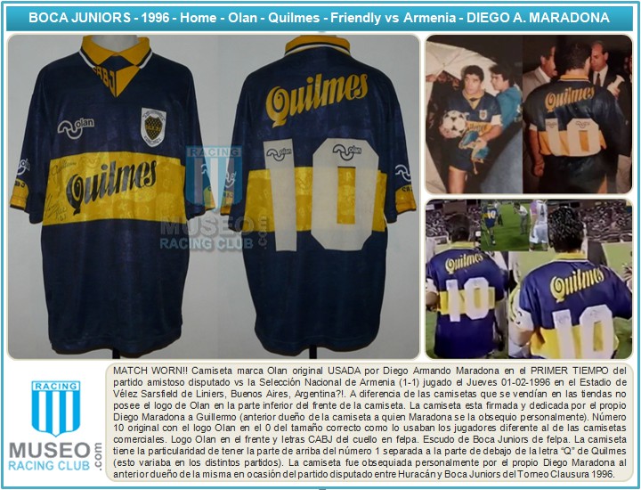 Maradona blue and yellow No.10 Boca Juniors shirt vs. Armenia National Team, 1996