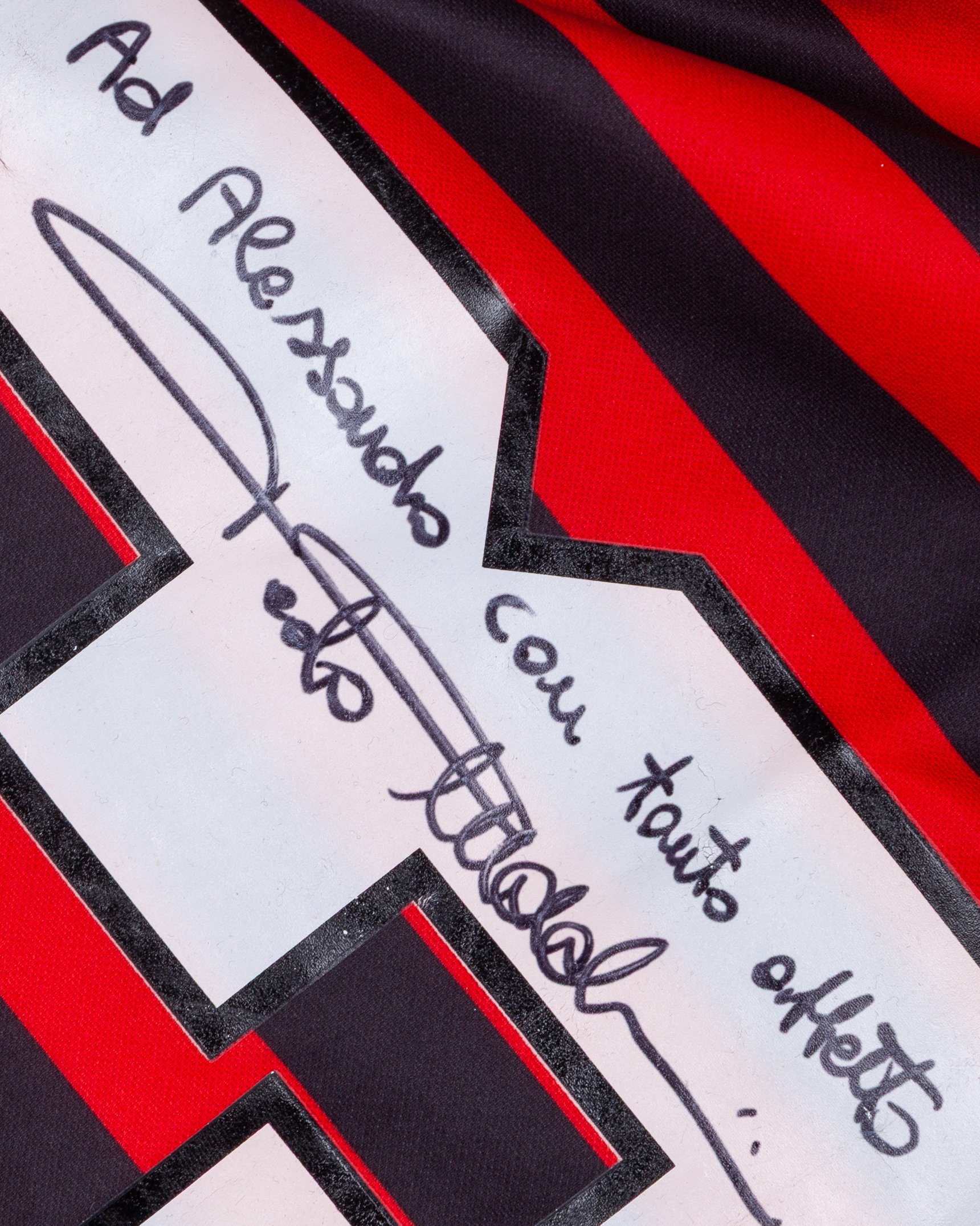 Paolo Maldini red and black No.3 AC Milan autographed short-sleeved shirt, 1999-00