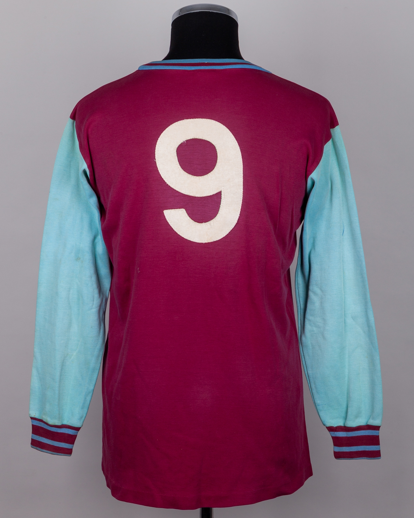 Claret and blue No.9 West Ham United long-sleeved shirt, mid 1970s