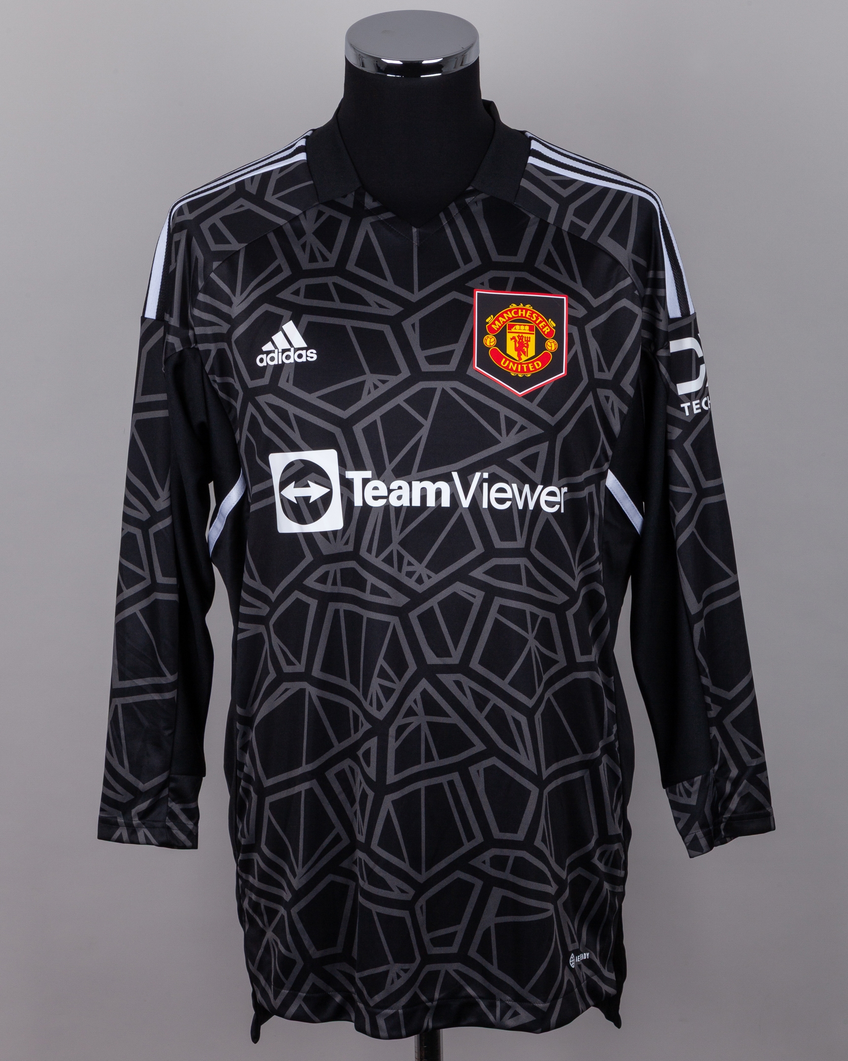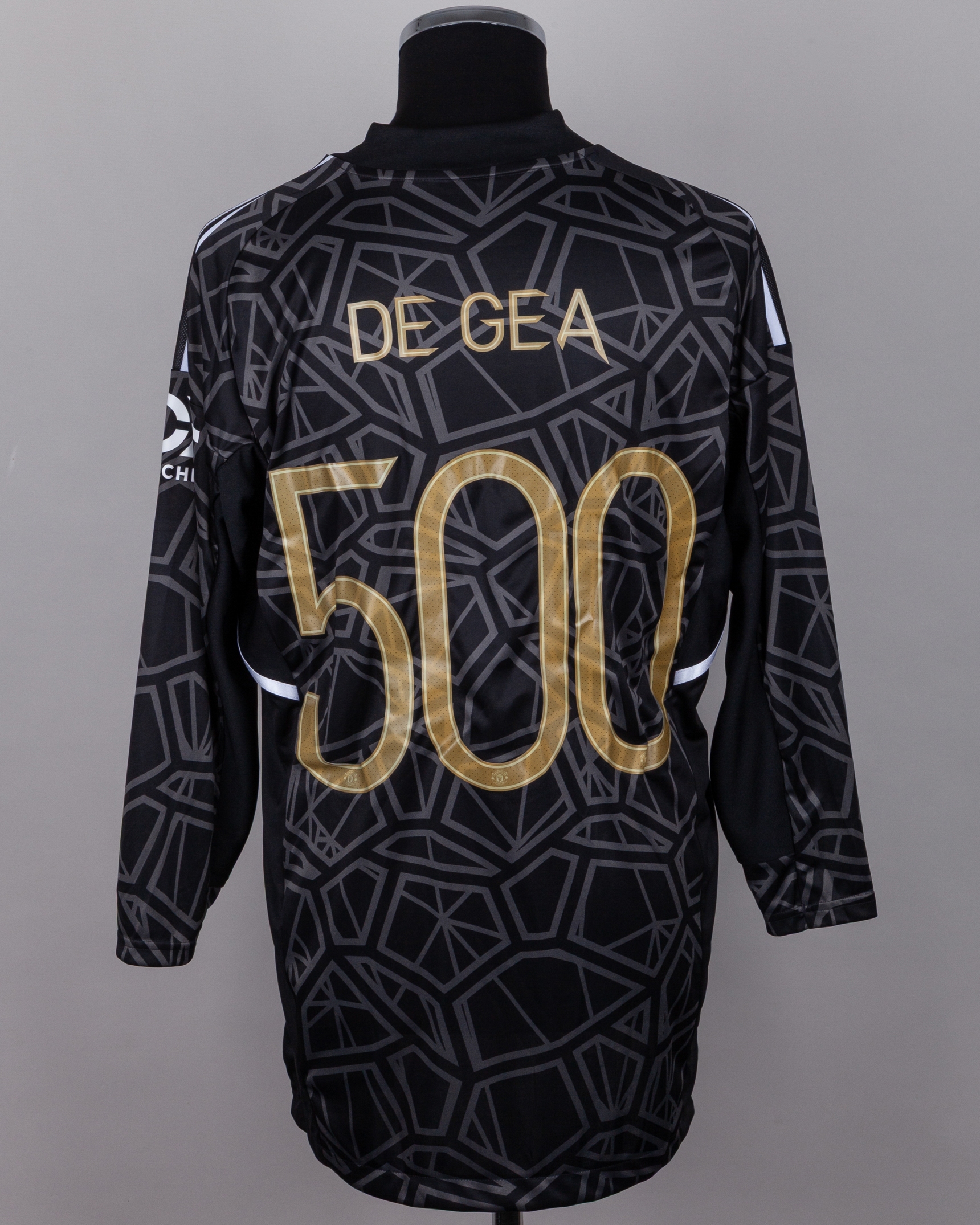 David De Gea black Manchester United commemorative shirt, the reverse numbered 500 to celebrate his 500 appearance for Manchester United