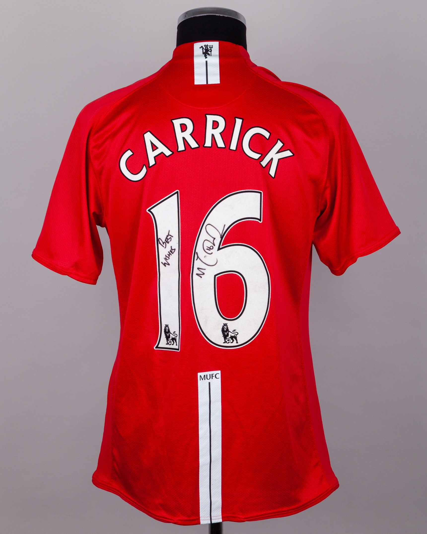 Michael Carrick red No.16 Manchester United autographed short-sleeved shirt, 2007-09