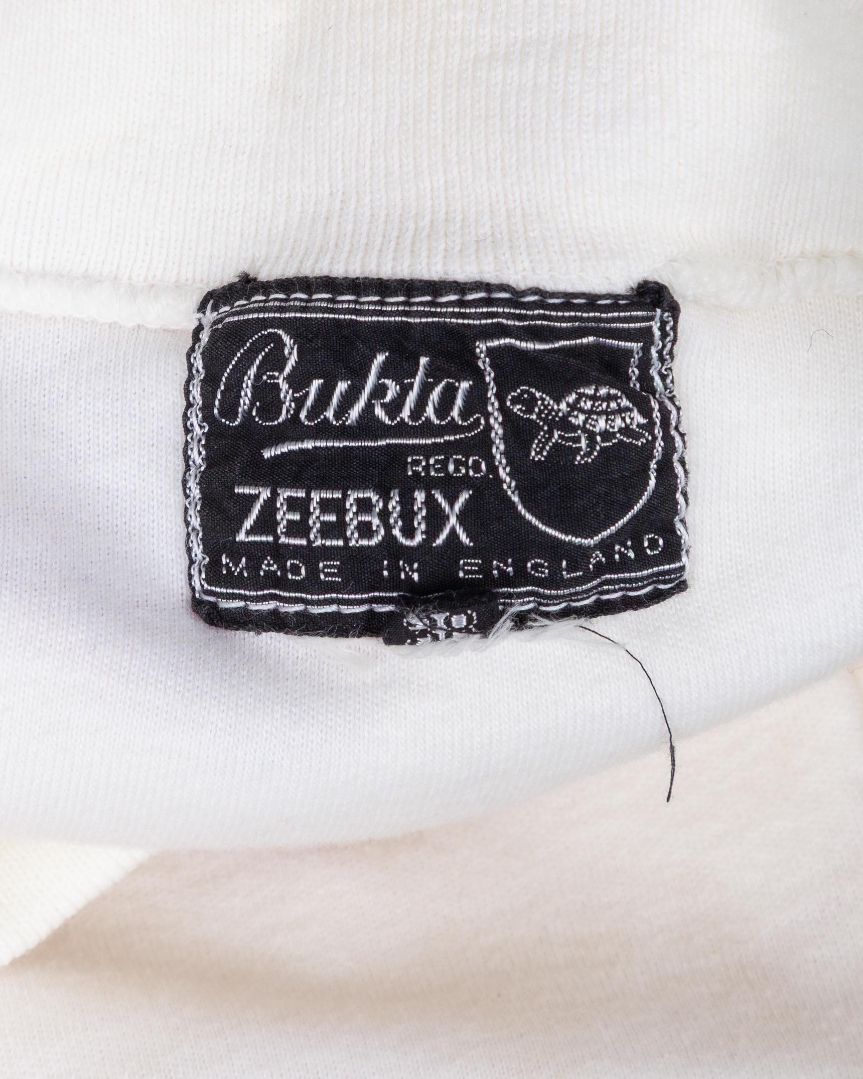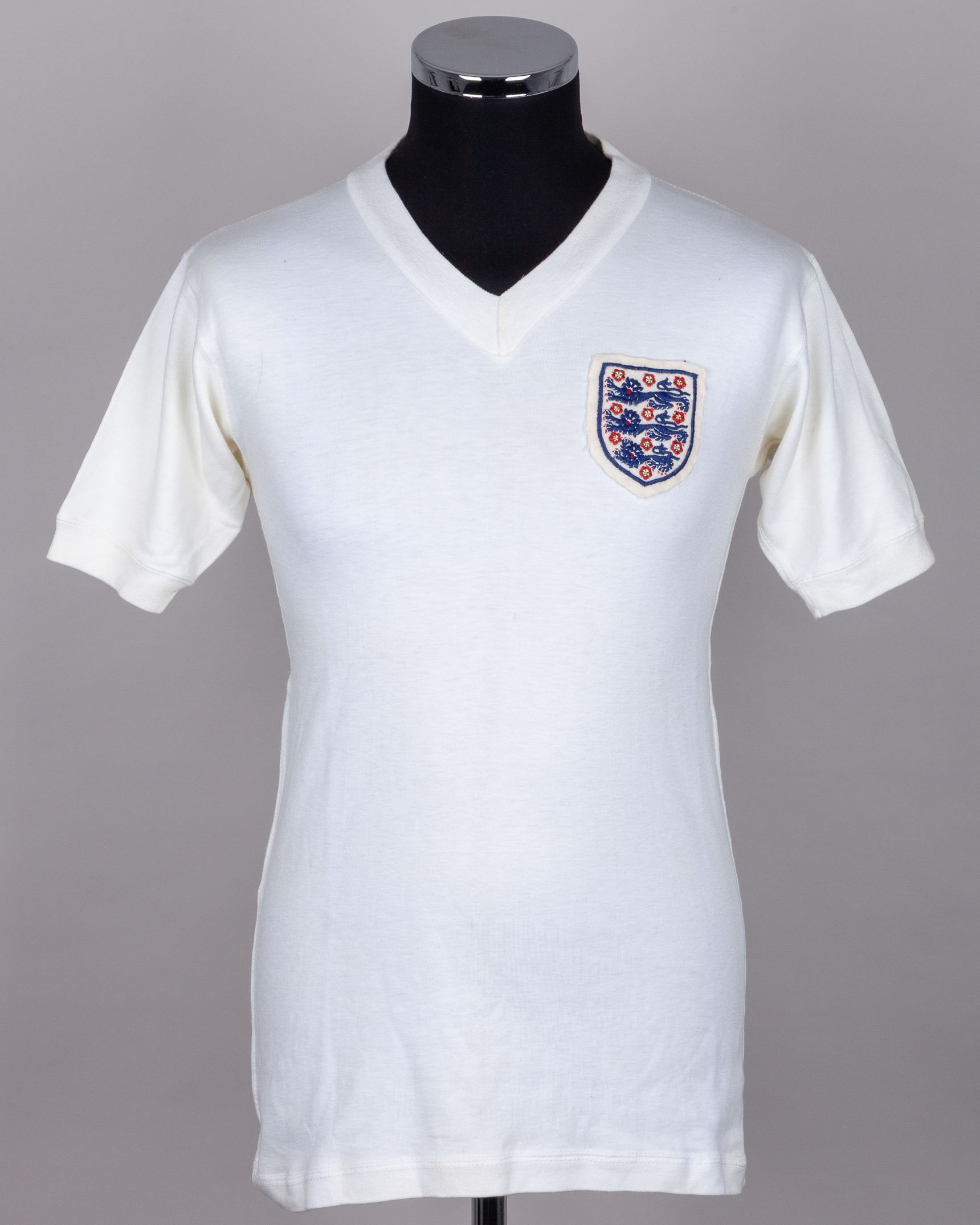 Mick Jones white white England v. Sweden match worn short-sleeved shirt, 1965