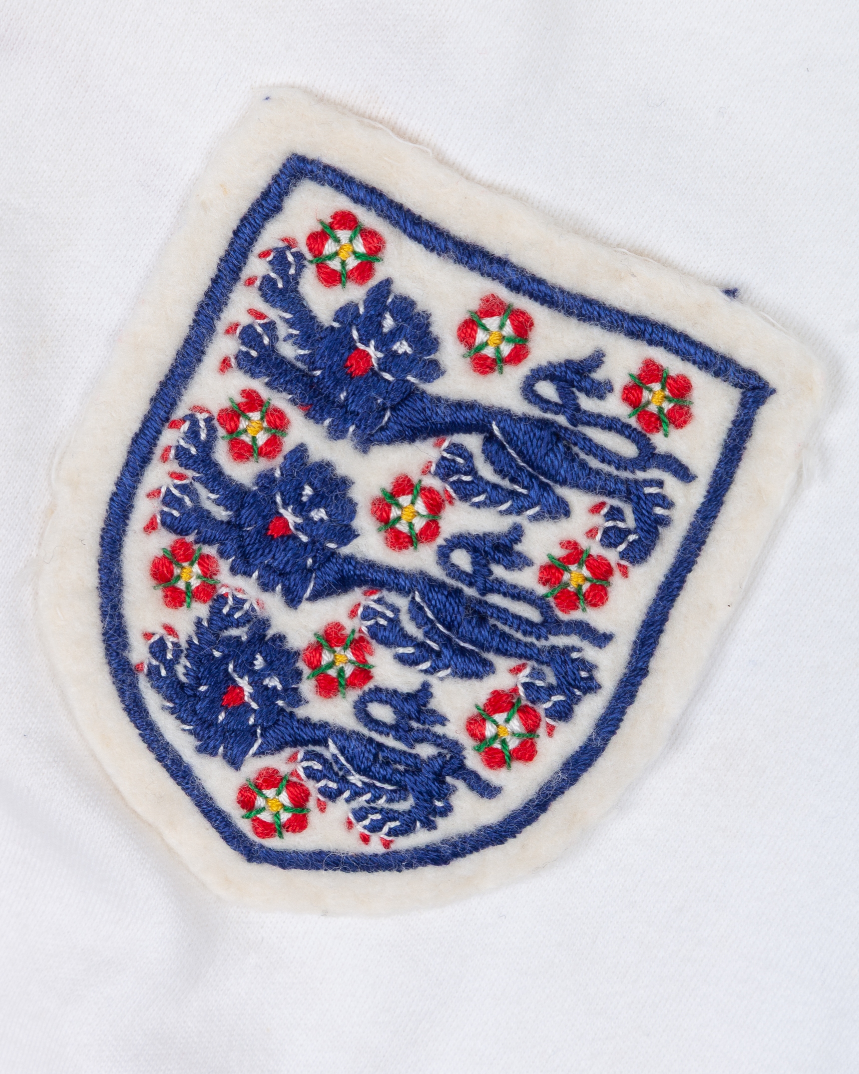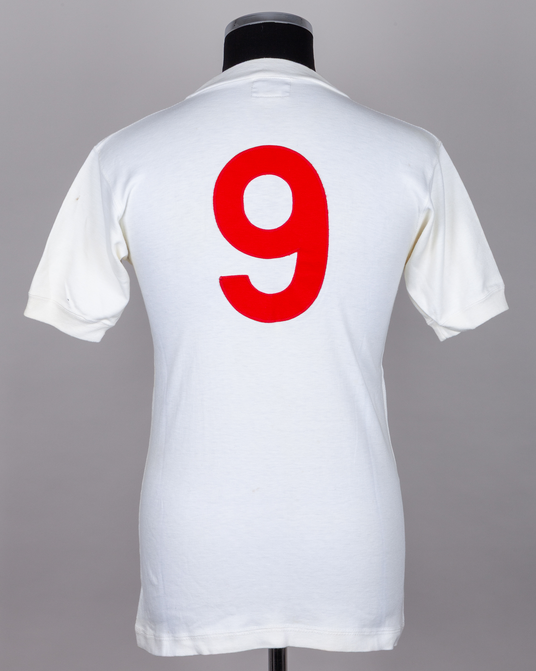 The above shirt was worn by Mick Jones on his international debut against Sweden, in the End of Season tour match played on 16th May 1965 in Gothenburg, England defeated Sweden 2-1