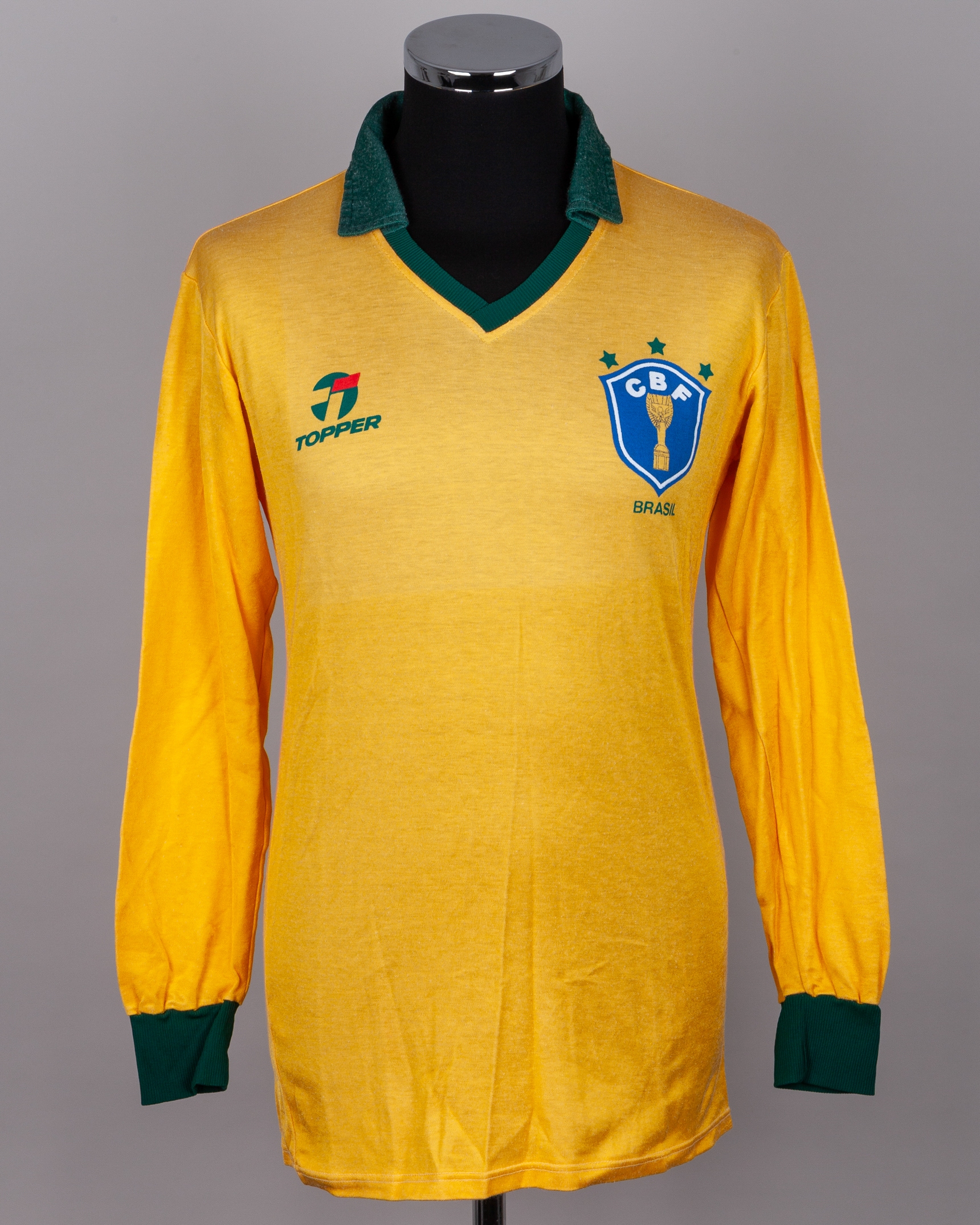John Byrne - Nilsinho yellow and green No.6 Brazil long-sleeved shirt, 1987