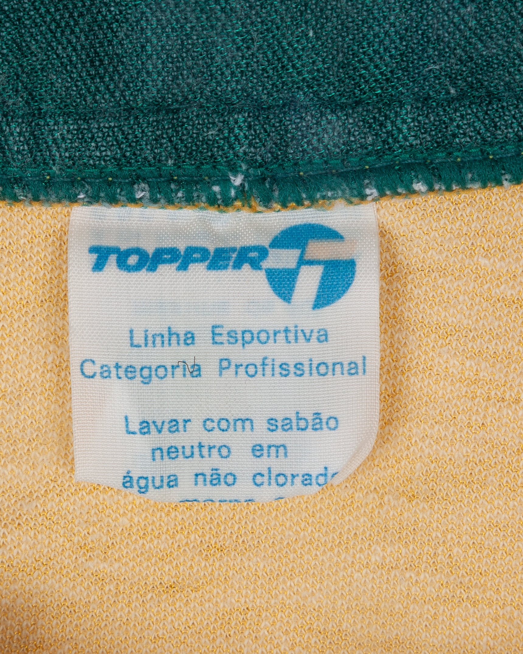 John Byrne - Nilsinho yellow and green No.6 Brazil v. Republic of Ireland long-sleeved shirt, 1987, Topper, with v-neck collar and printed badge