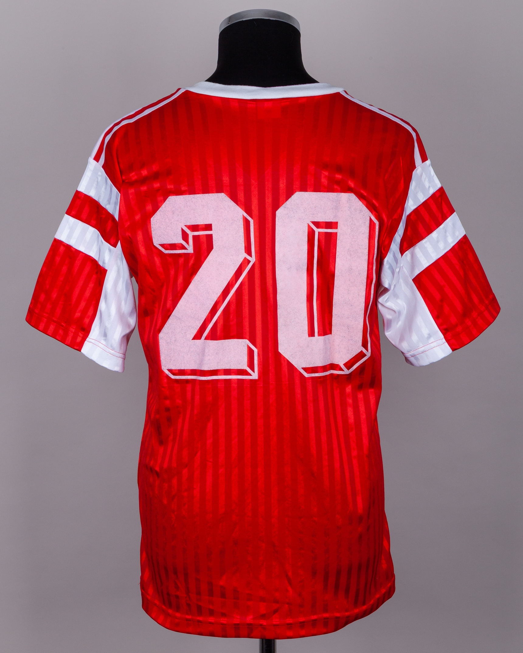 John Byrne - Ahmed El-Kass red and white No.20 Egypt match worn short-sleeved shirt, 1990