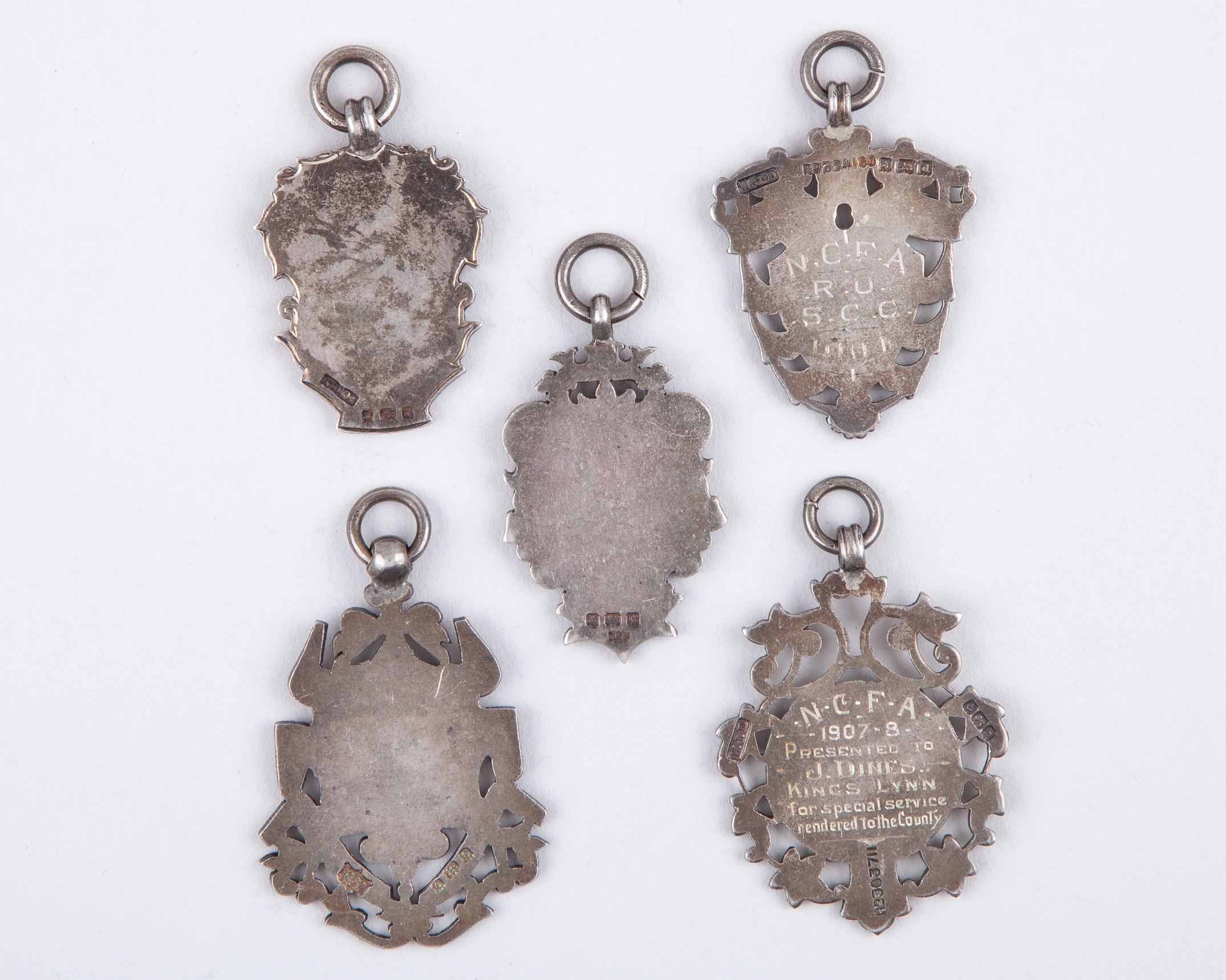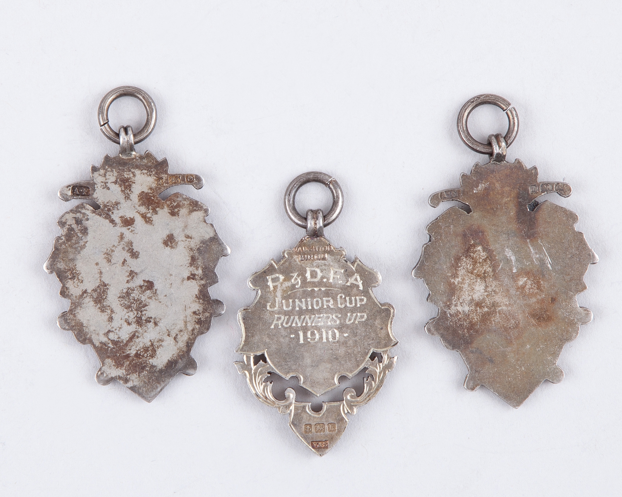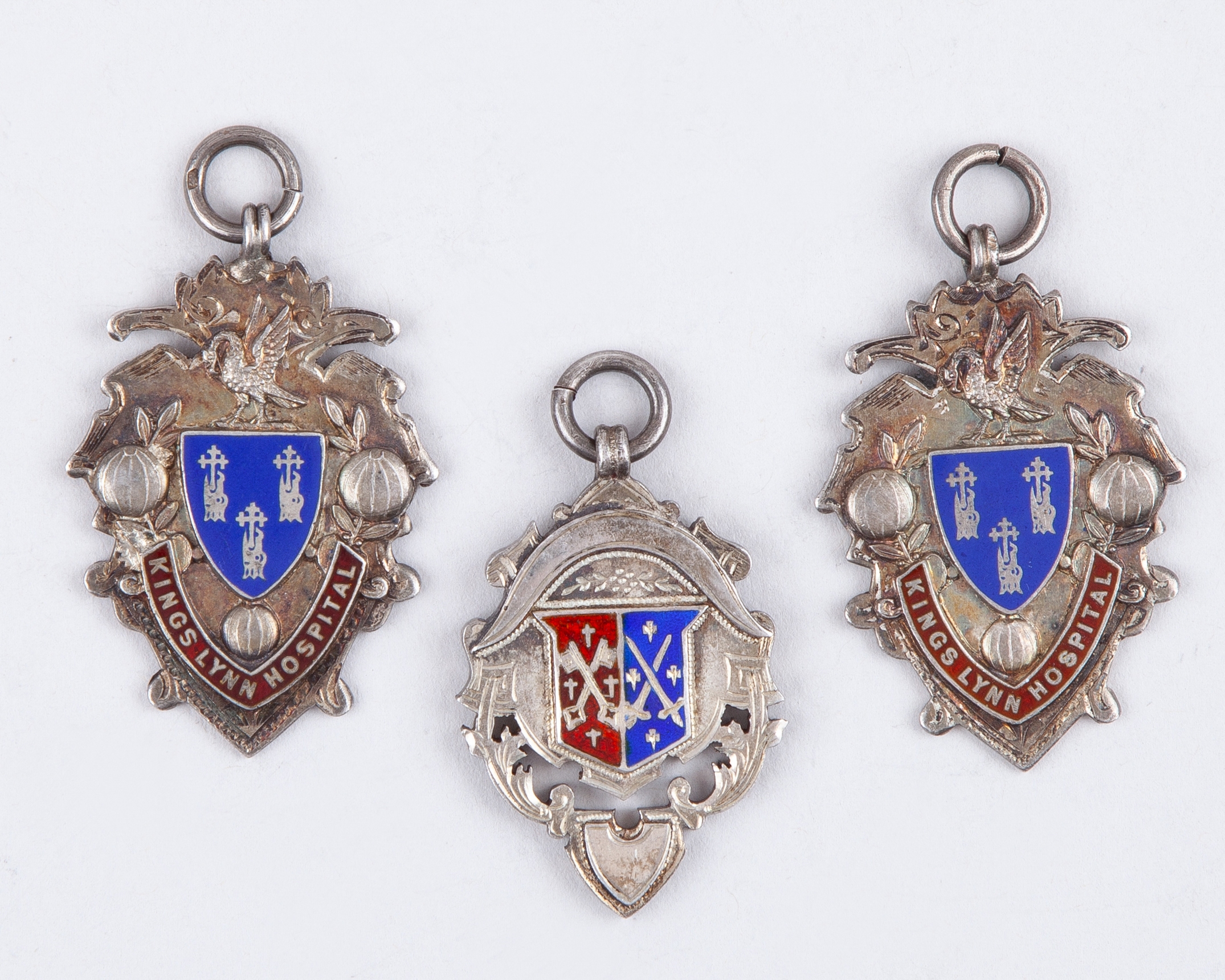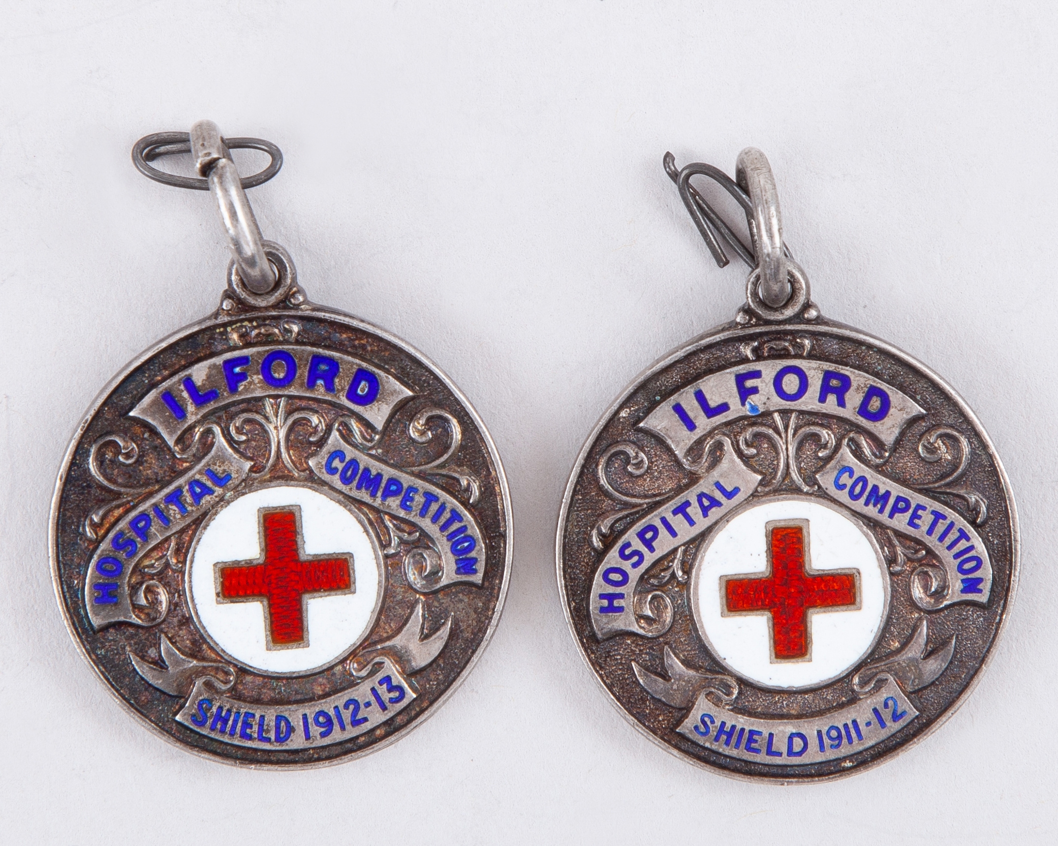 Joseph Dines ten various silver, enamel and silver medals, including two King's Lynn Hospital medals, two Ilford Hospital Competition Shields medals, 1911-12, 1912-13, Junior Cup medal and five silver medals, combined 124grms