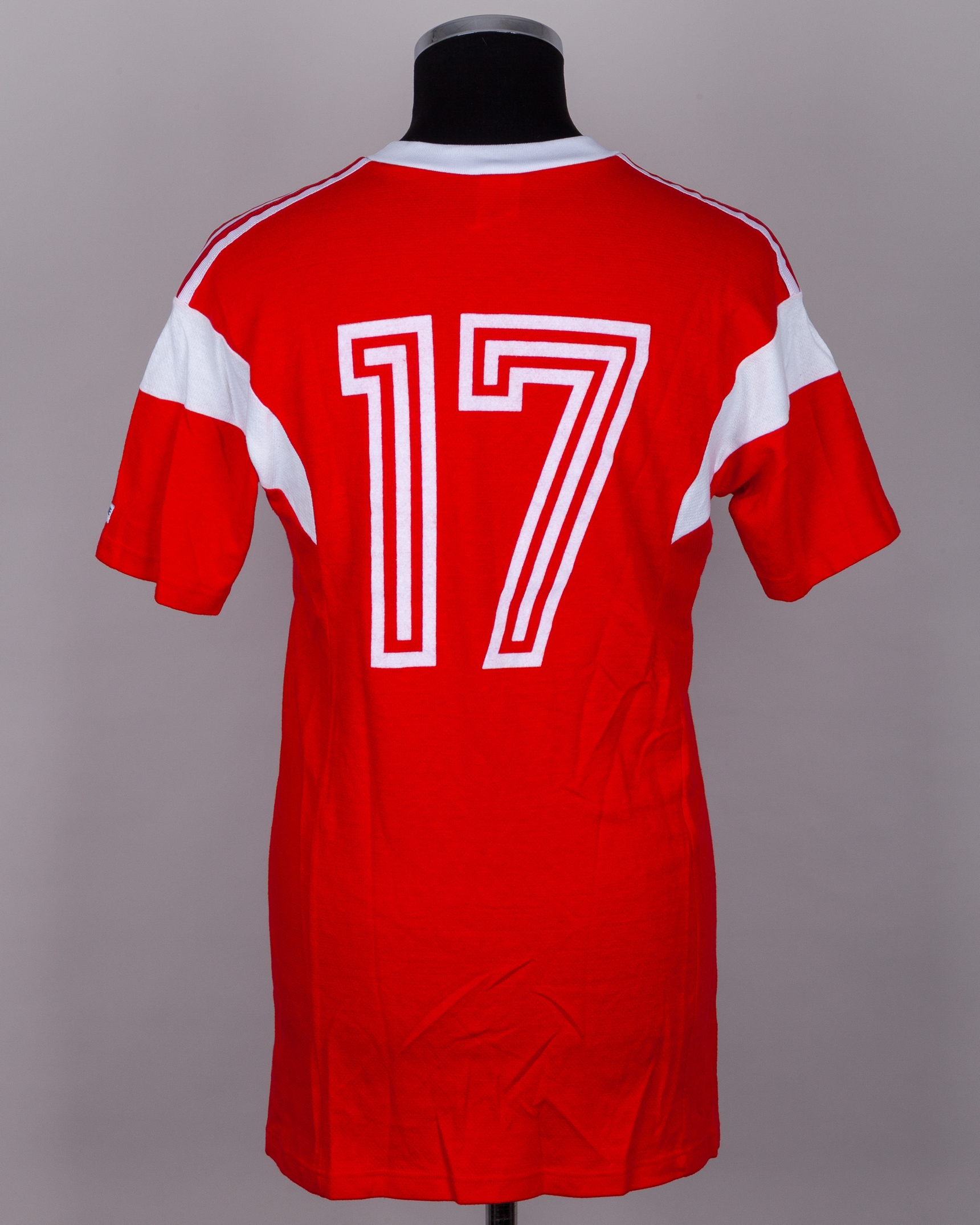 John Byrne - red and white No.17 Malta v. Republic of Ireland short-sleeved shirt, 1989