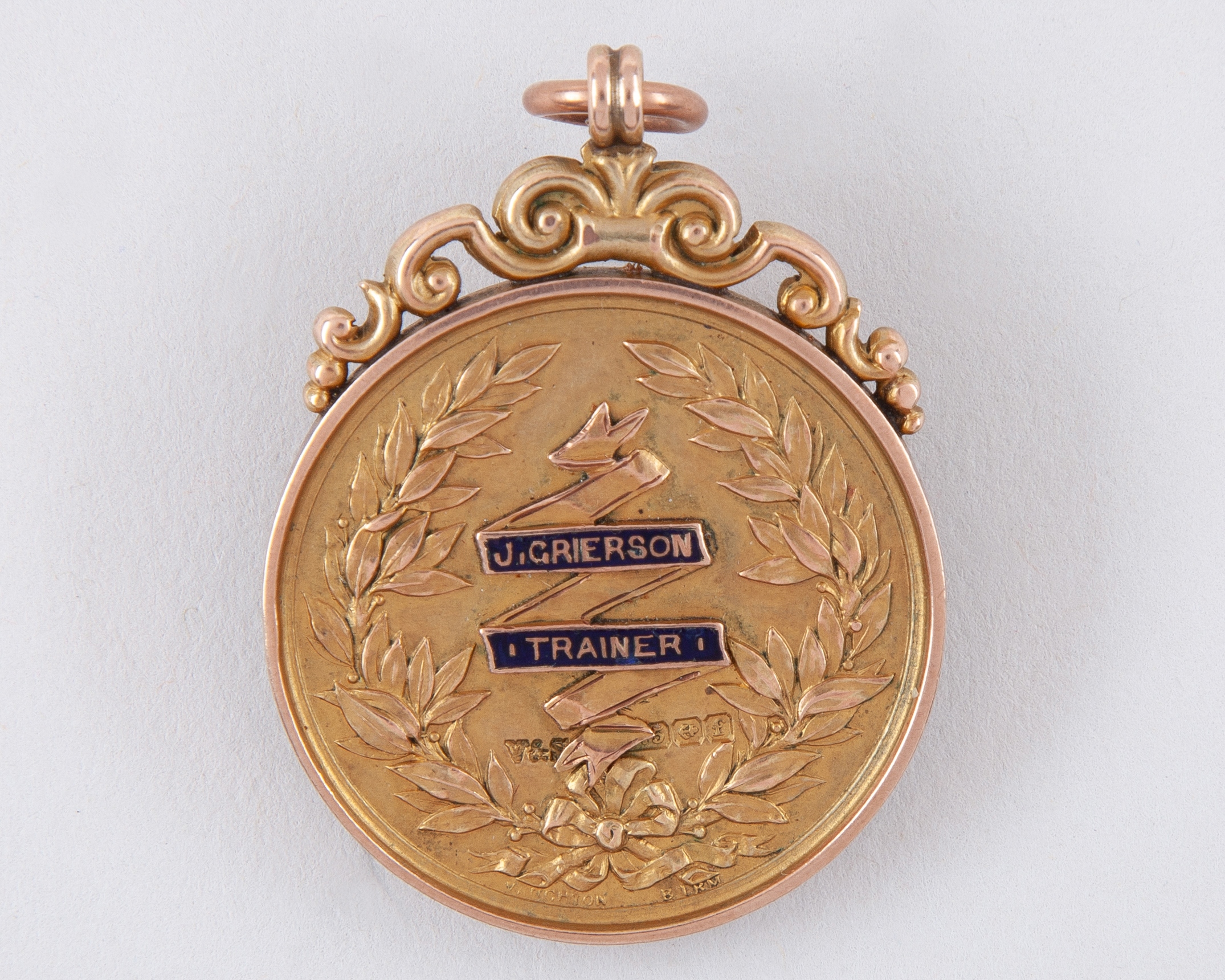 The medal was presented to trainer Grierson by Aston Villa to commemorate the Cup win. With the club Grierson helped the Villa to six League titles and four F.A.Cups