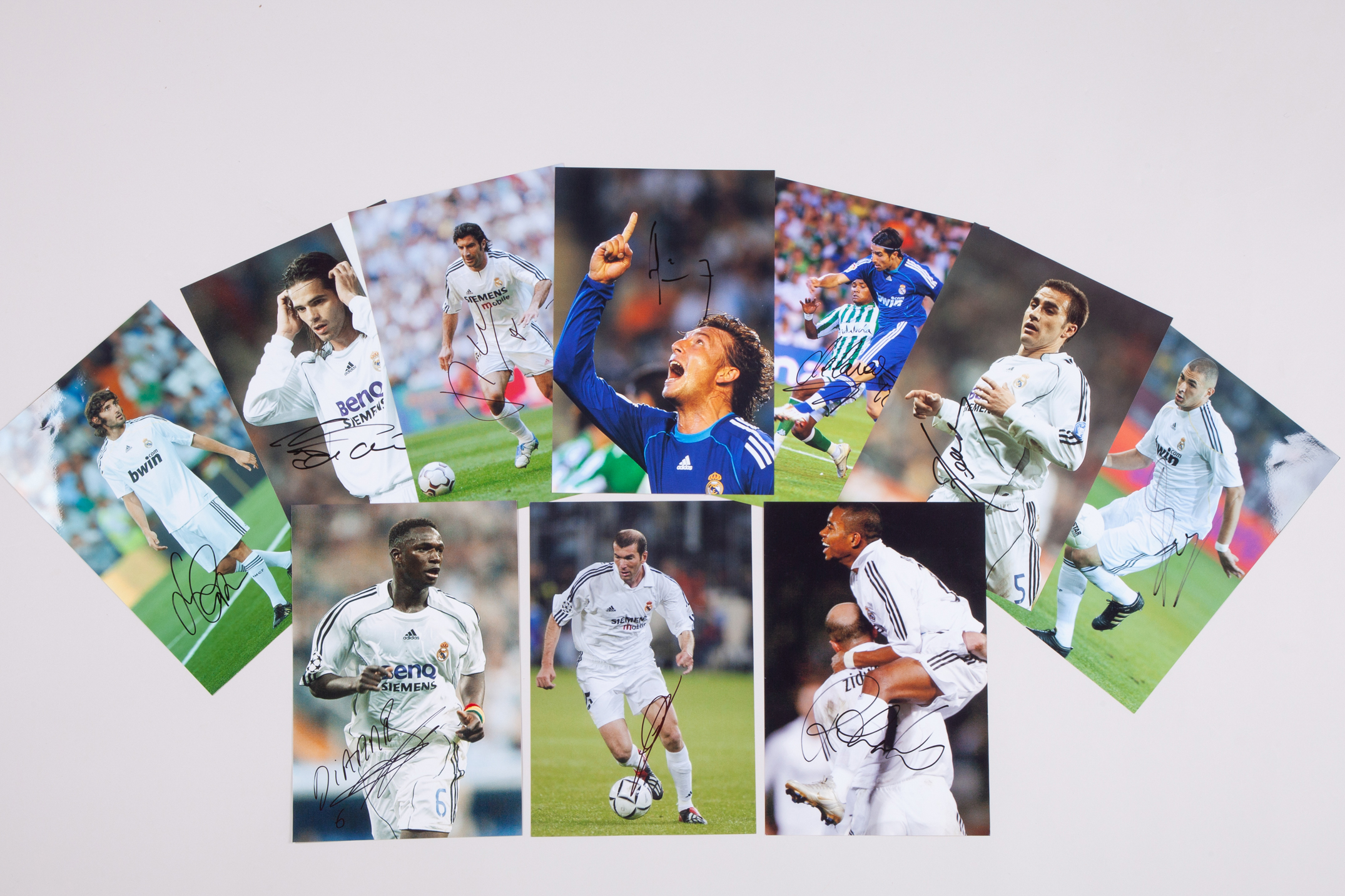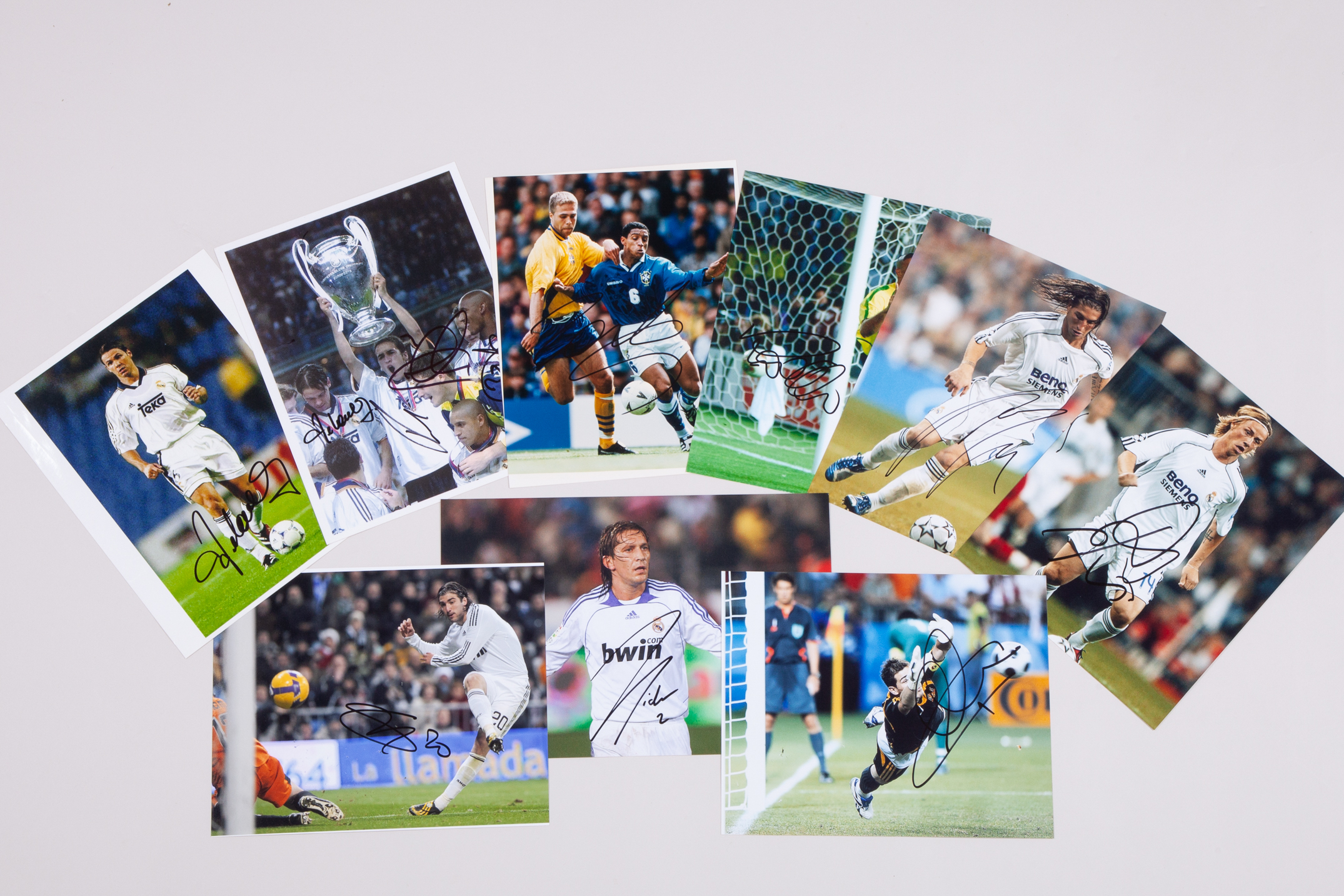 A collection of nineteen Real Madrid related autographed photographs, including Zinedine Zidane, Ronaldo and Luis Figo