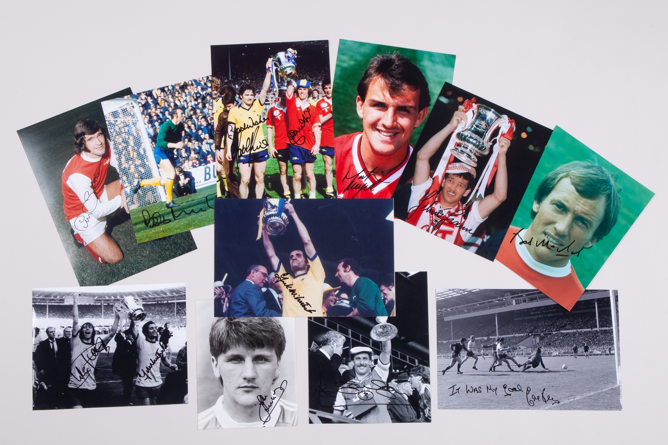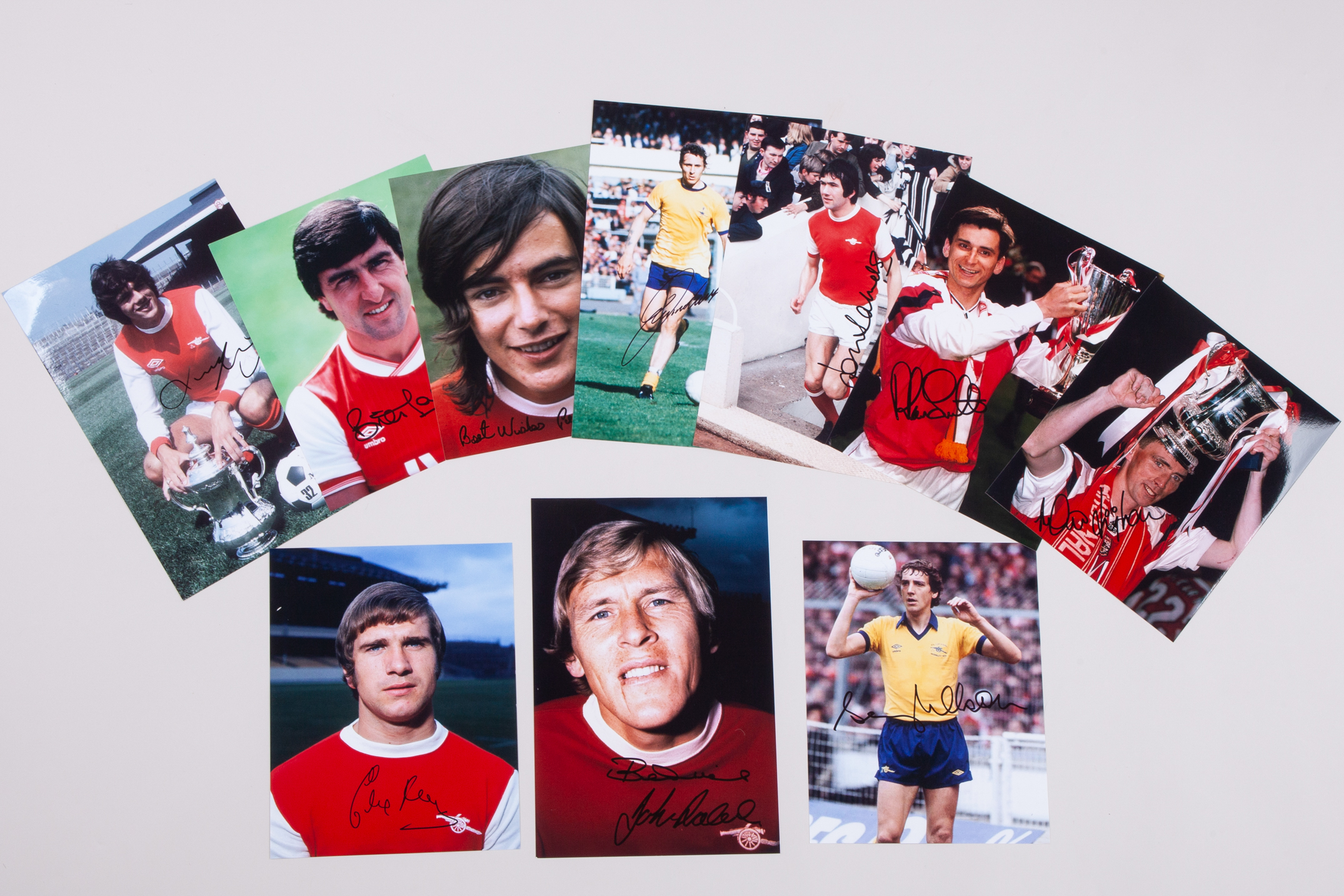 A collection of forty-three autographed Arsenal photographs, including Thierry Henry, David Rocastle and Kenny Sansom