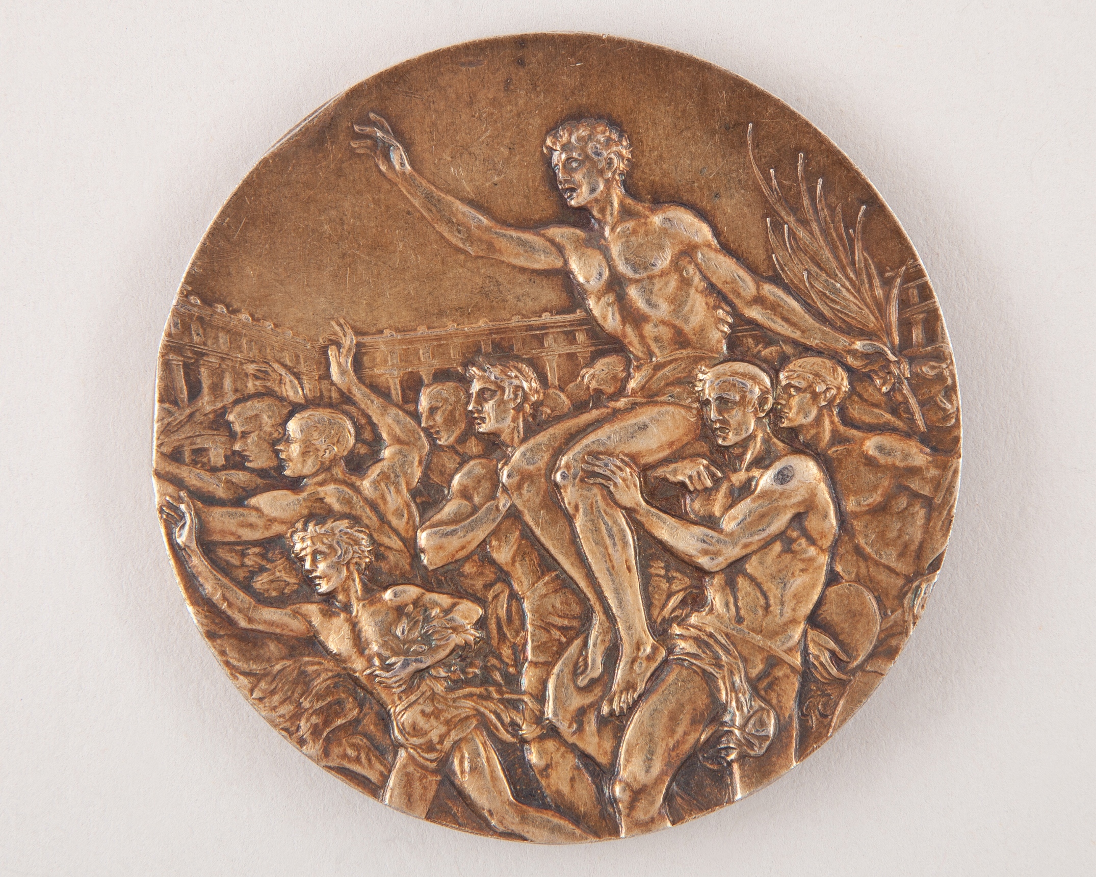 The above medal was awarded to Jose Nasazzi. In the 1928 Olympic gold medal match played on 10th June 1928 at The Olympic Stadium, Uruguay and Argentina drew the match 1-1 and in the gold medal replay match played on 13th June at The Olympic Stadium Uruguay defeated Argentina 2-1