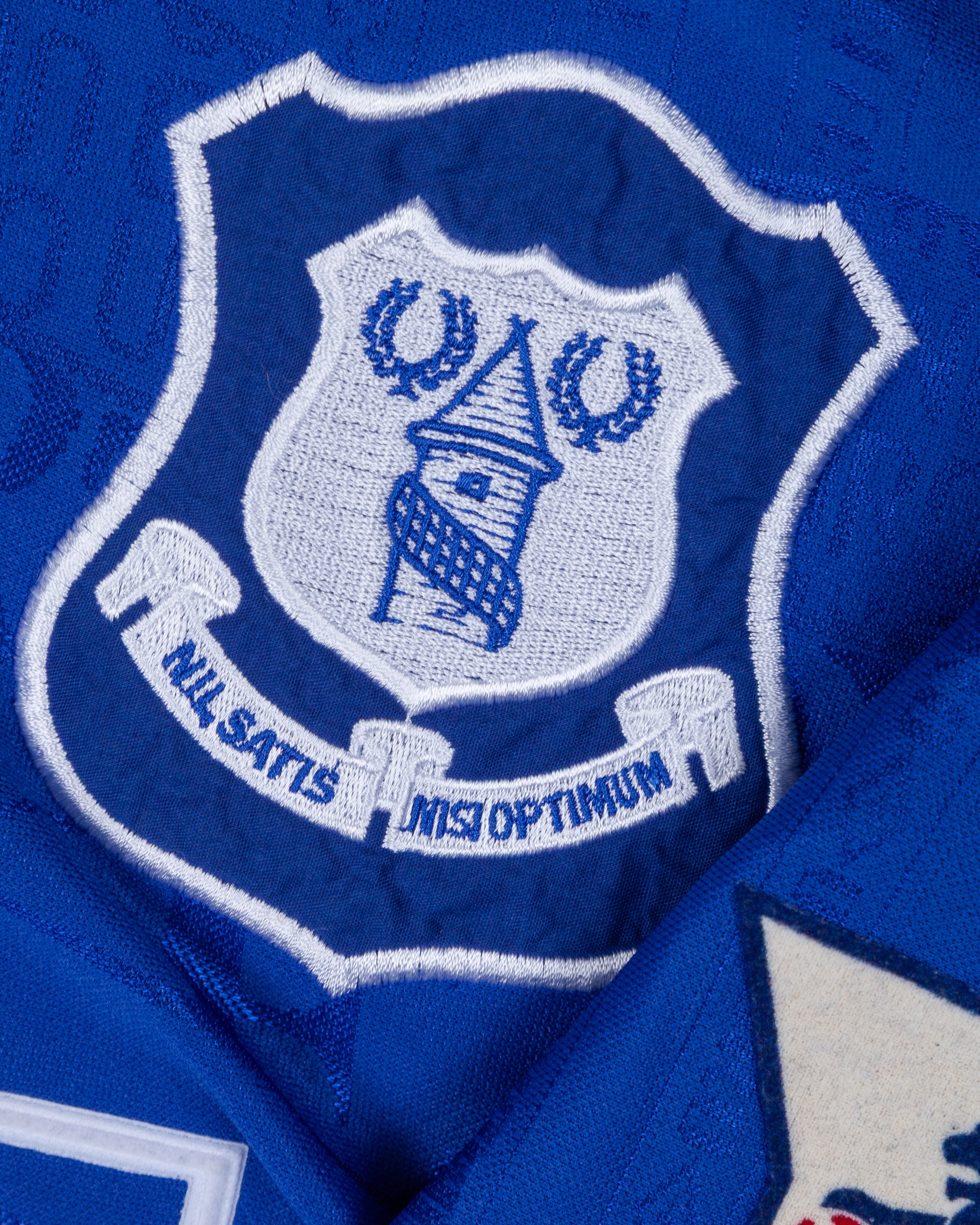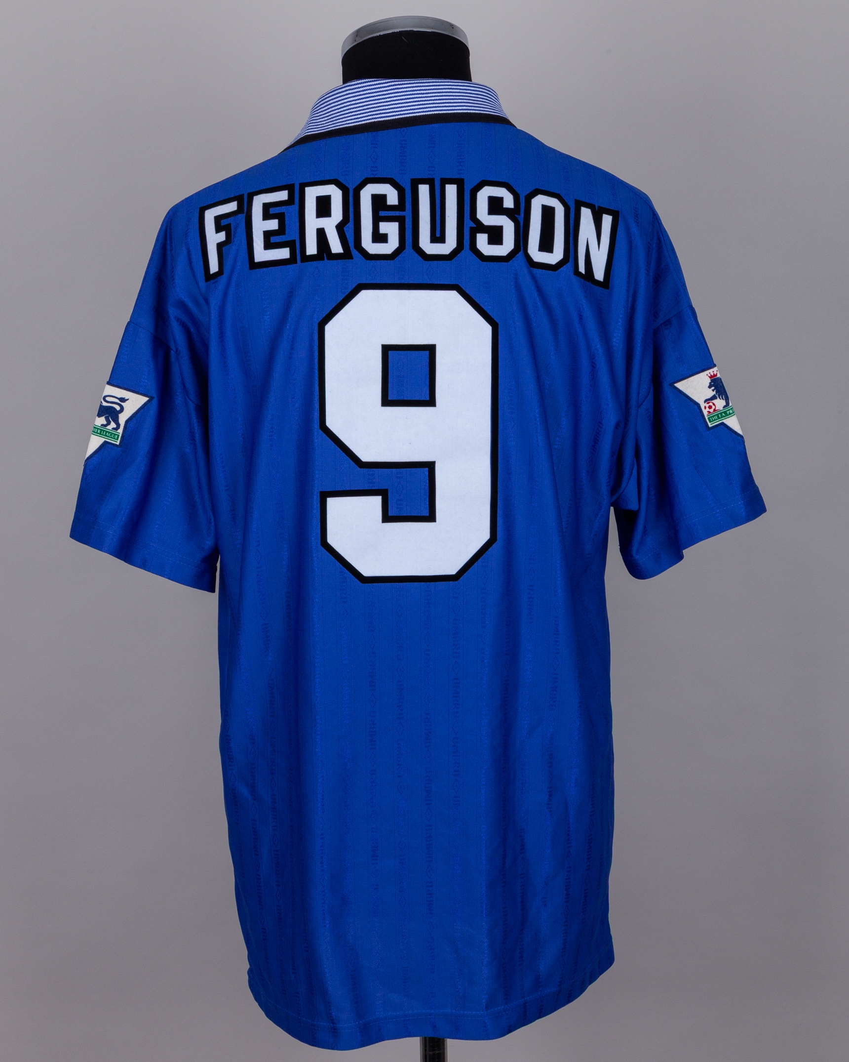 Duncan Ferguson blue and white No.9 Everton short-sleeved shirt, 1995-96