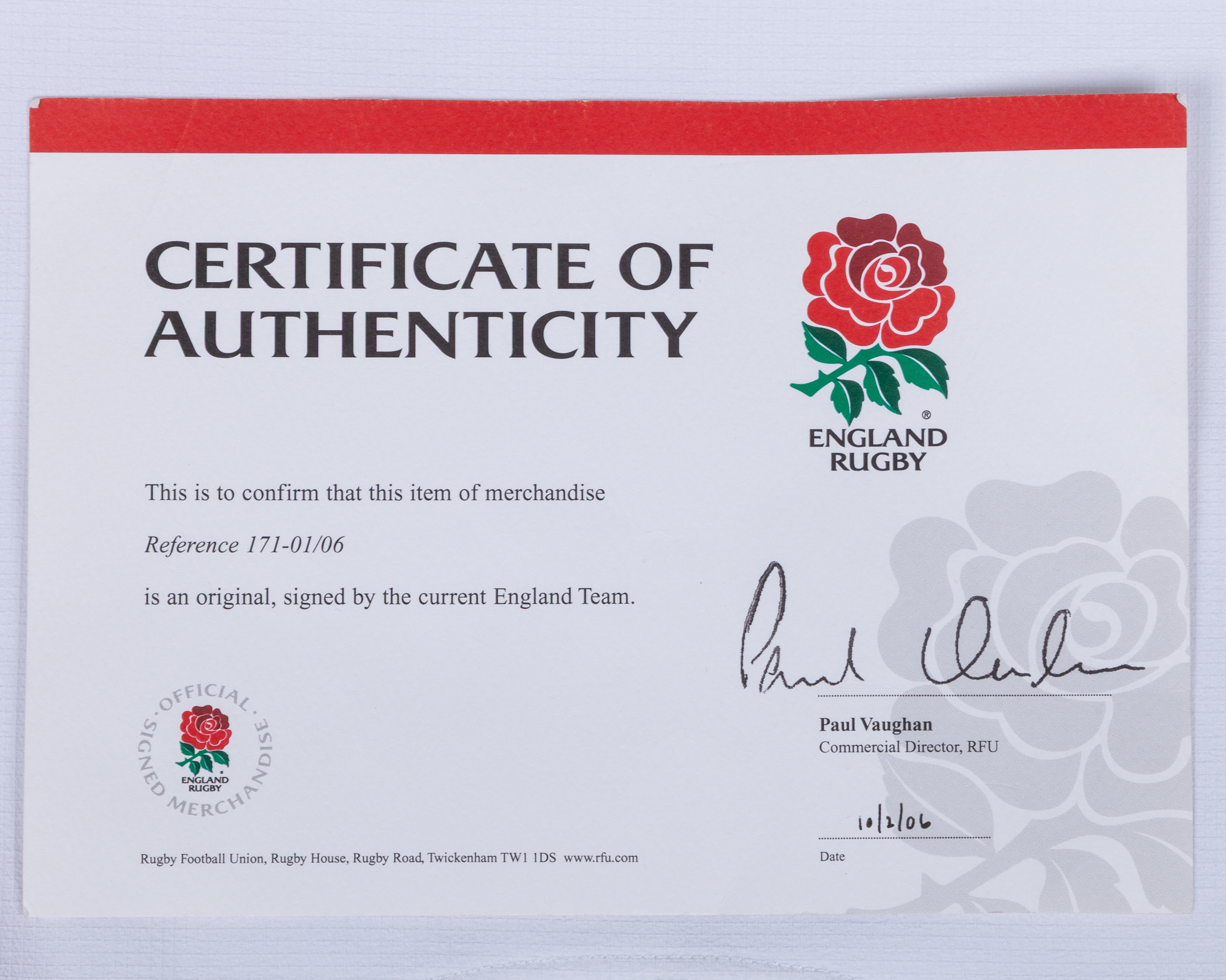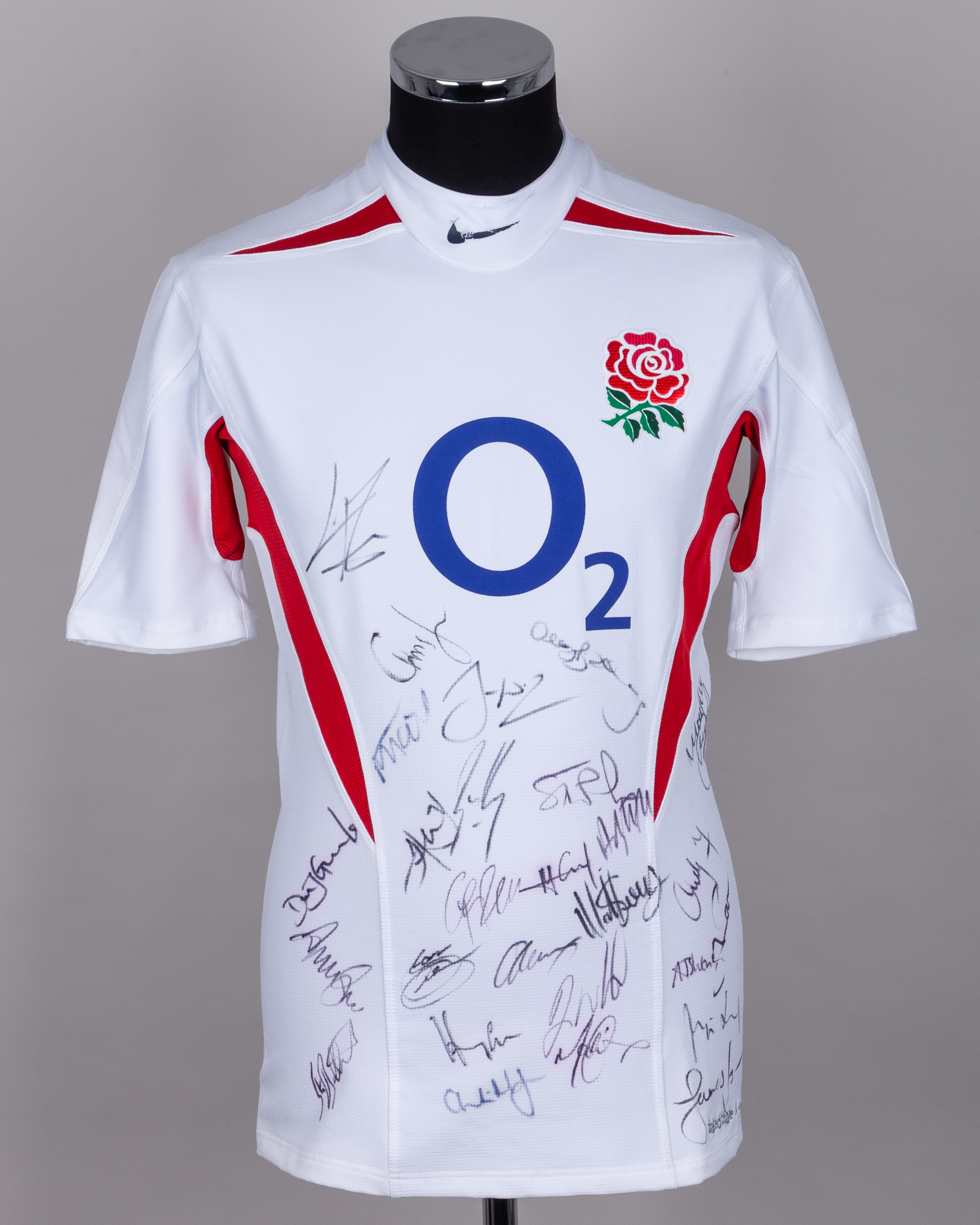 White and red England RFU autographed replica short-sleeved shirt, 2005-06