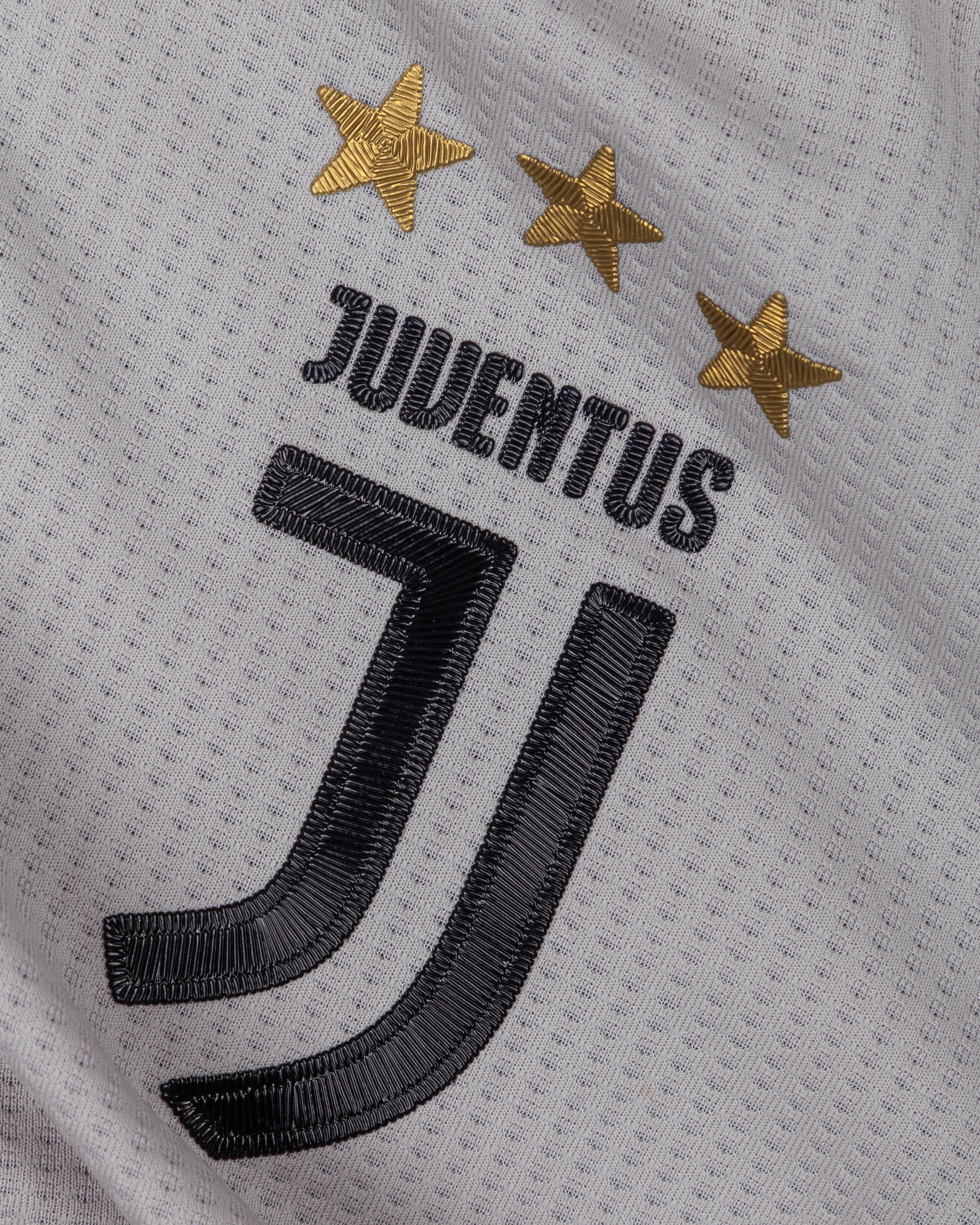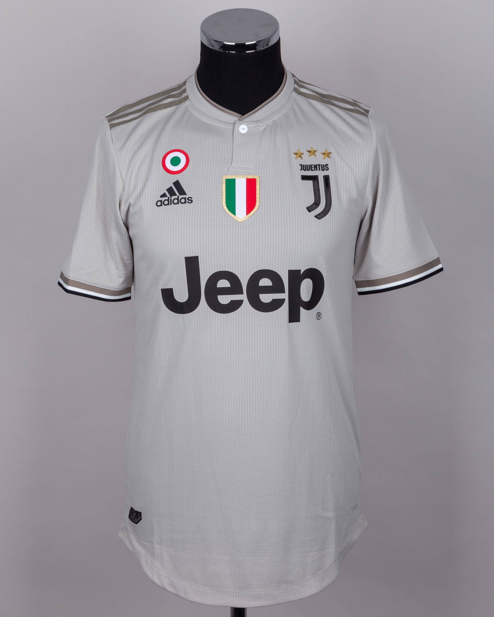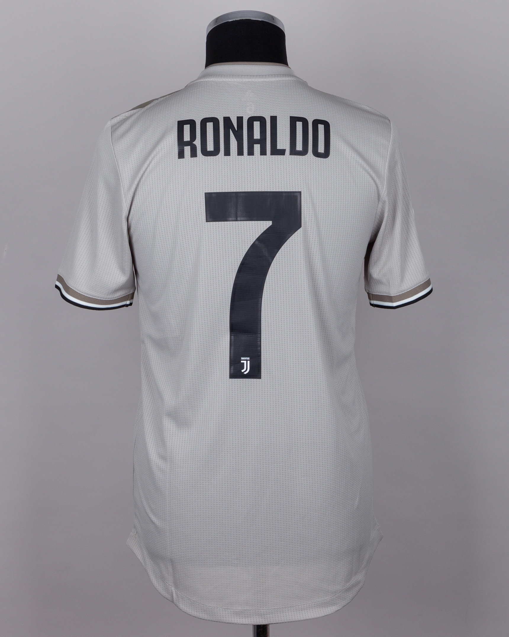 Cristiano Ronaldo grey No.7 Juventus short-sleeved shirt, 2018-19, Adidas, 6, with button-up collar and printed badge, with Italian flag printed badge, the reverse lettered RONALDO, the right sleeve with 2018-2019 Serie A