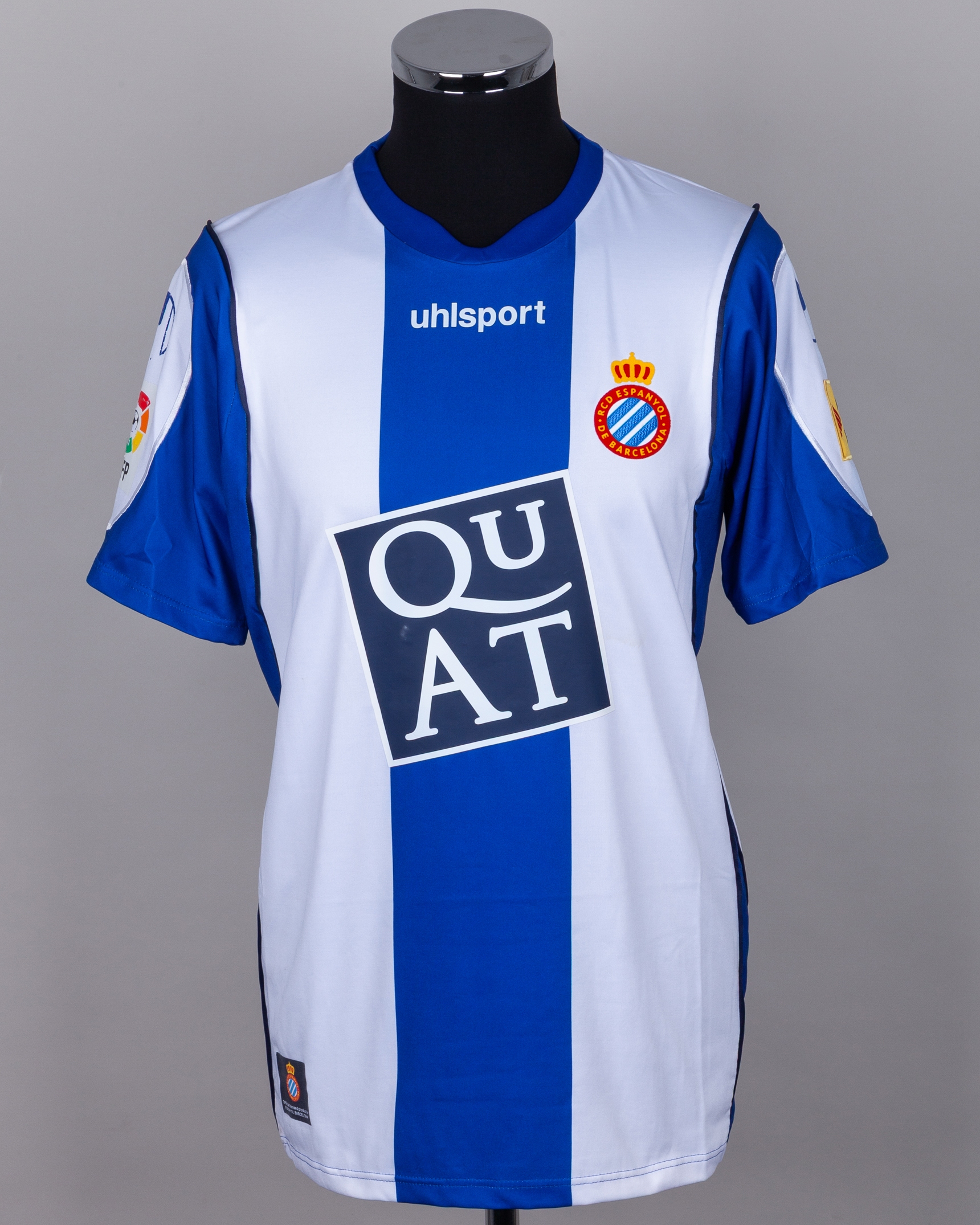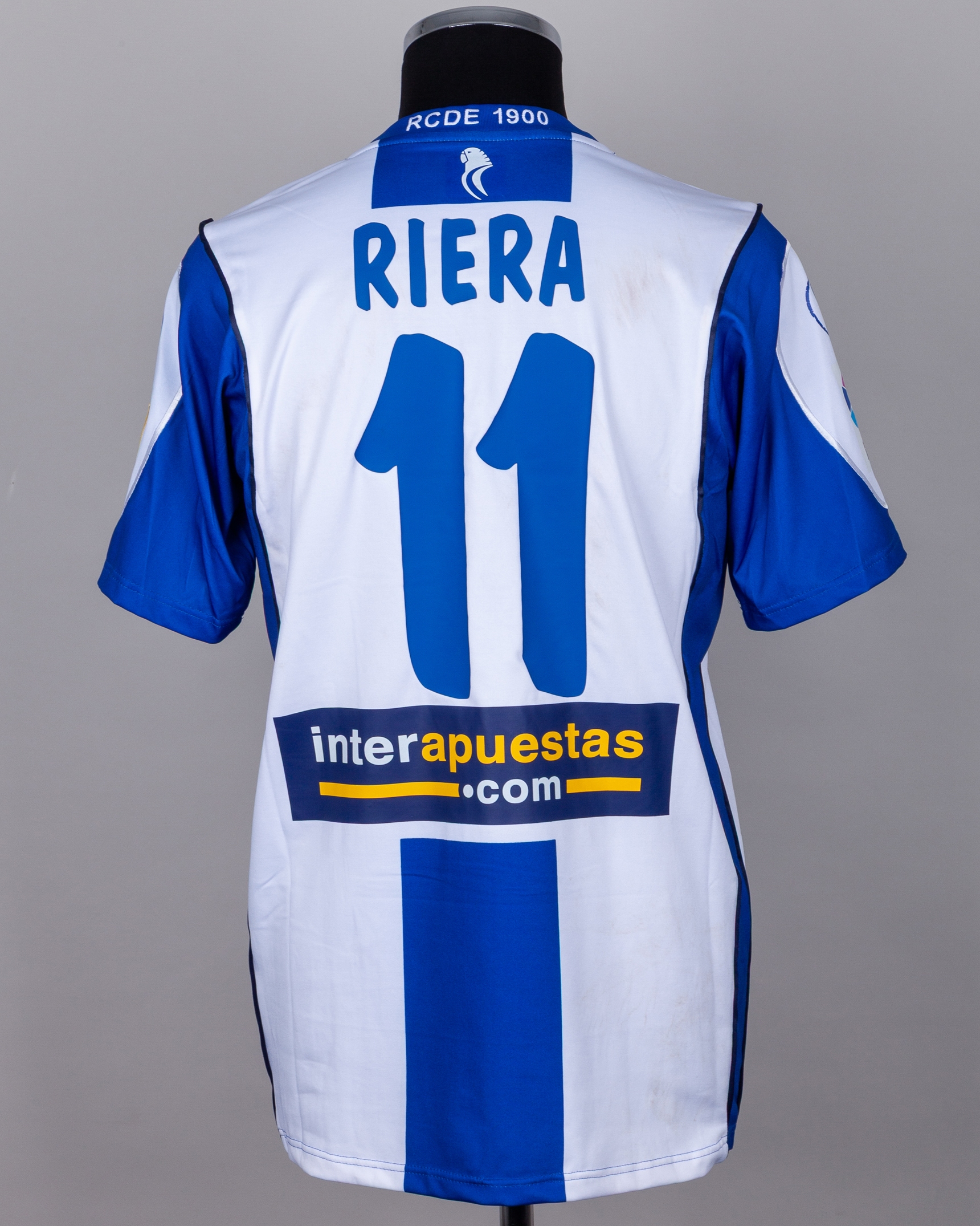 Albert Riera blue and white No.11 Espanyol v. Barcelona match worn short-sleeved shirt, 2007