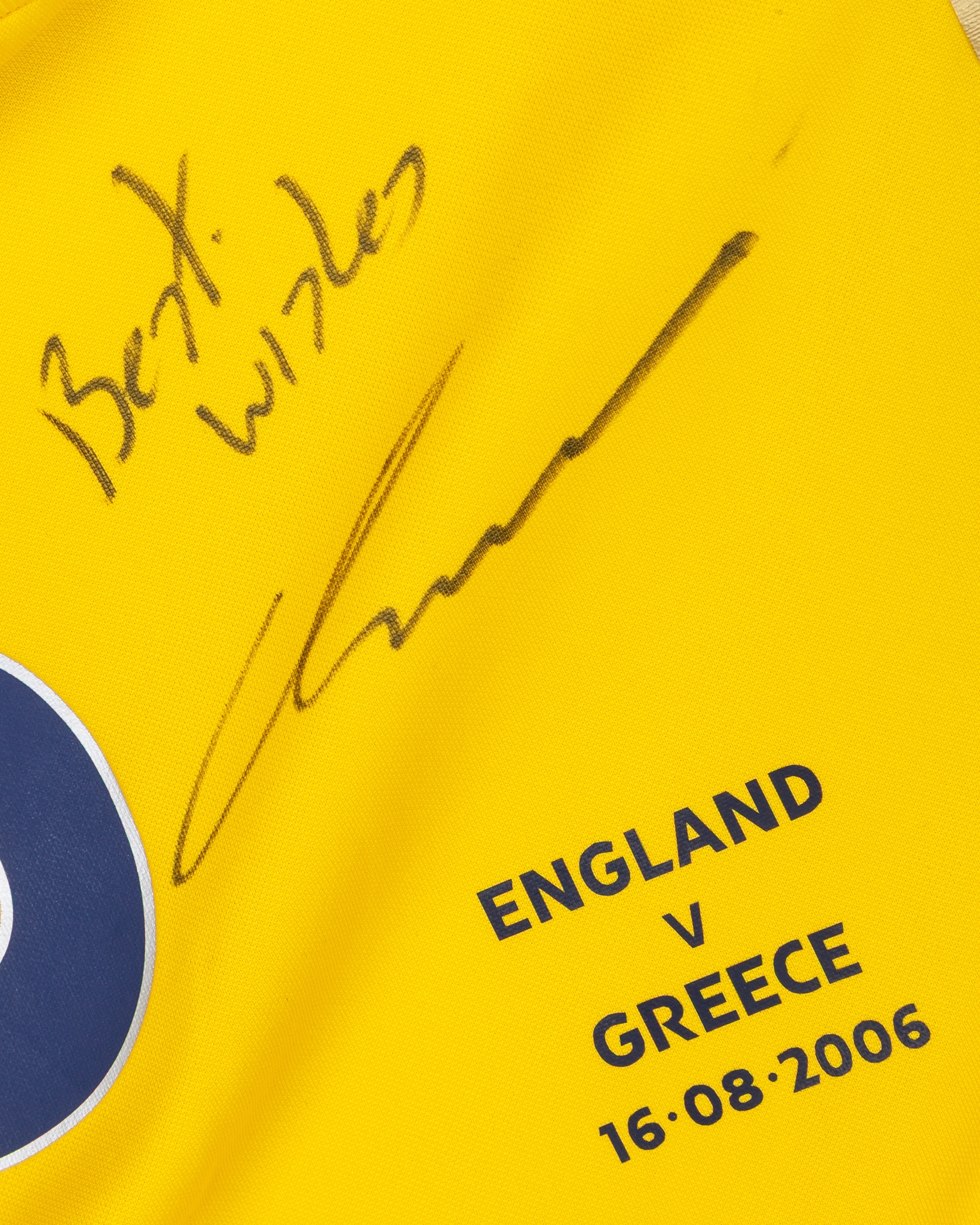 Chris Kirkland yellow No.13 England v. Greece autographed goalkeeper shirt, 2006