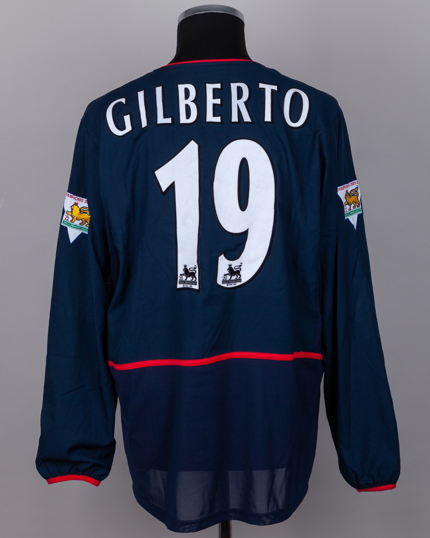 Gilberto blue and red No.19 Arsenal long-sleeved dual layer shirt, 2002-03