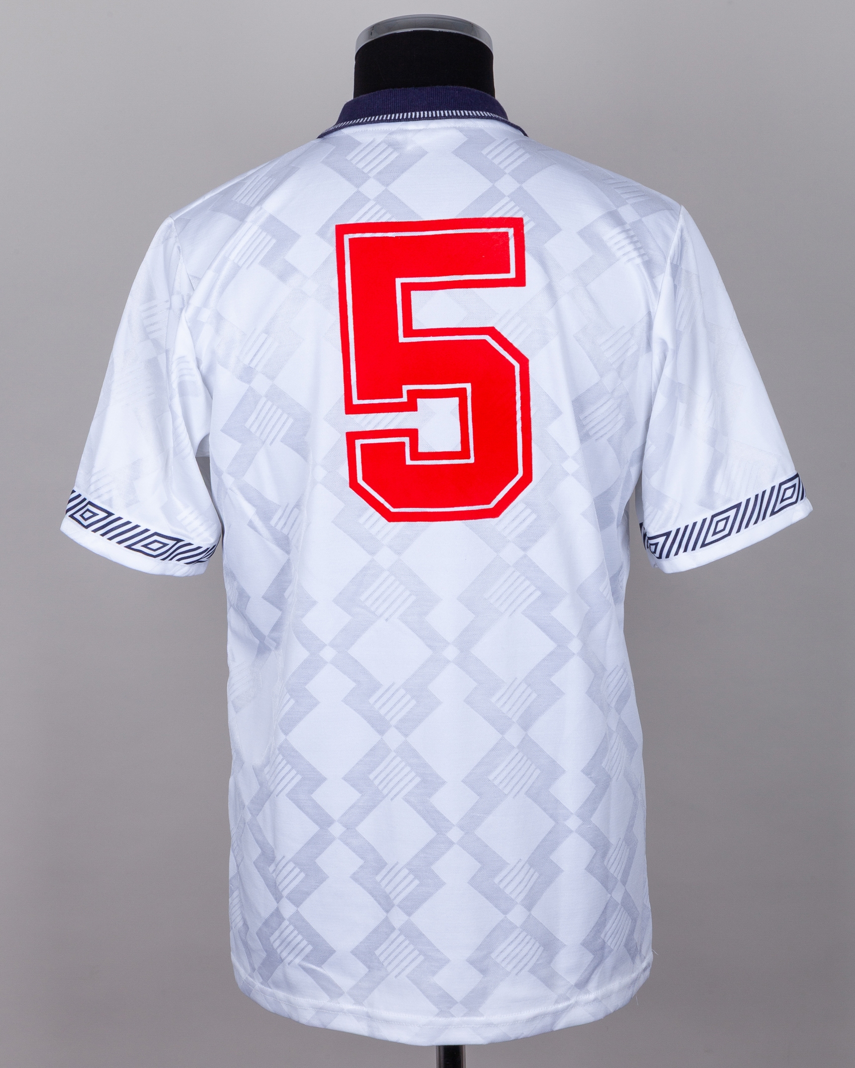 White and blue No.5 England Youth short-sleeved shirt, 1991