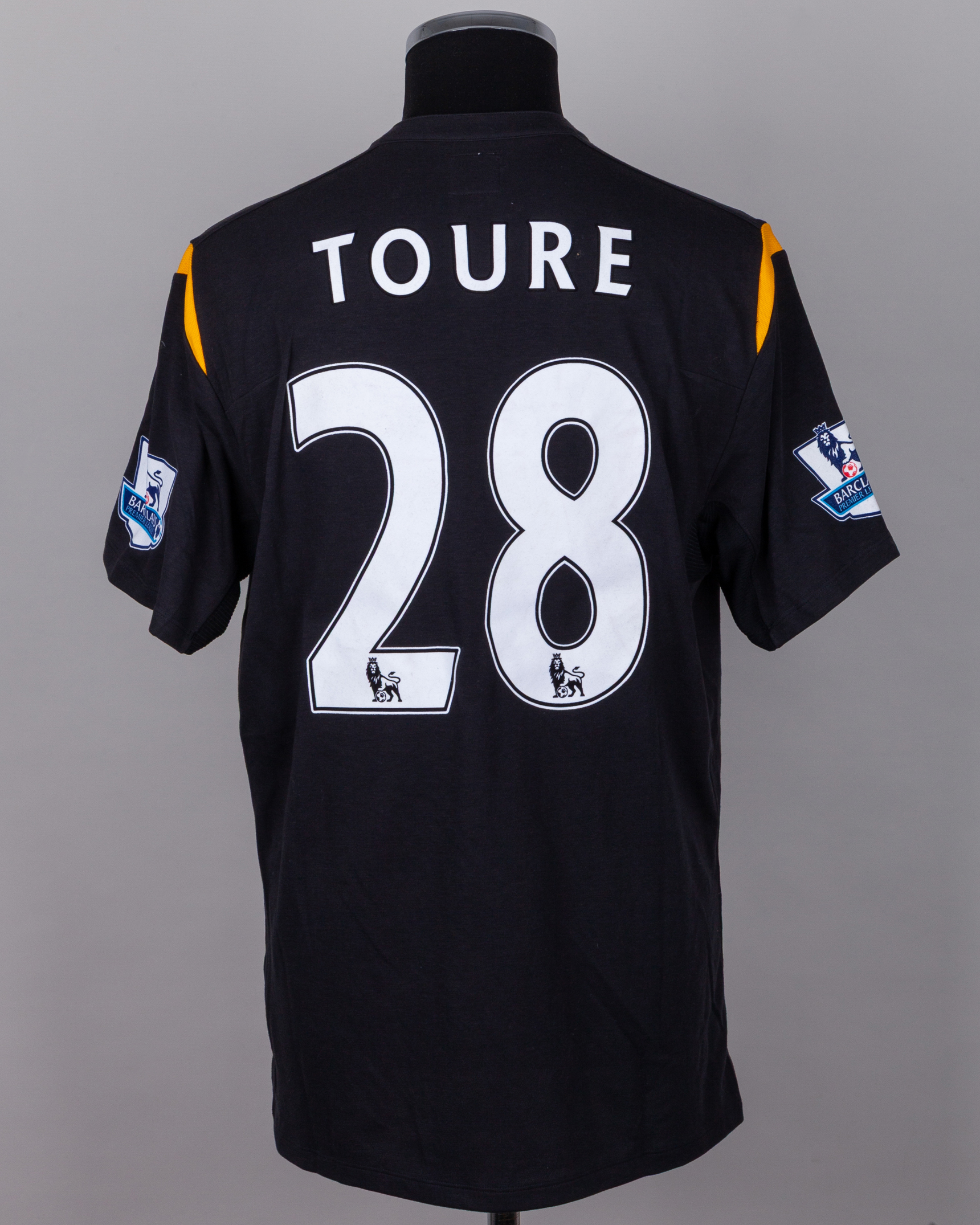 Kolo Toure black and yellow No28 Manchester City match worn short-sleeved shirt, 2010