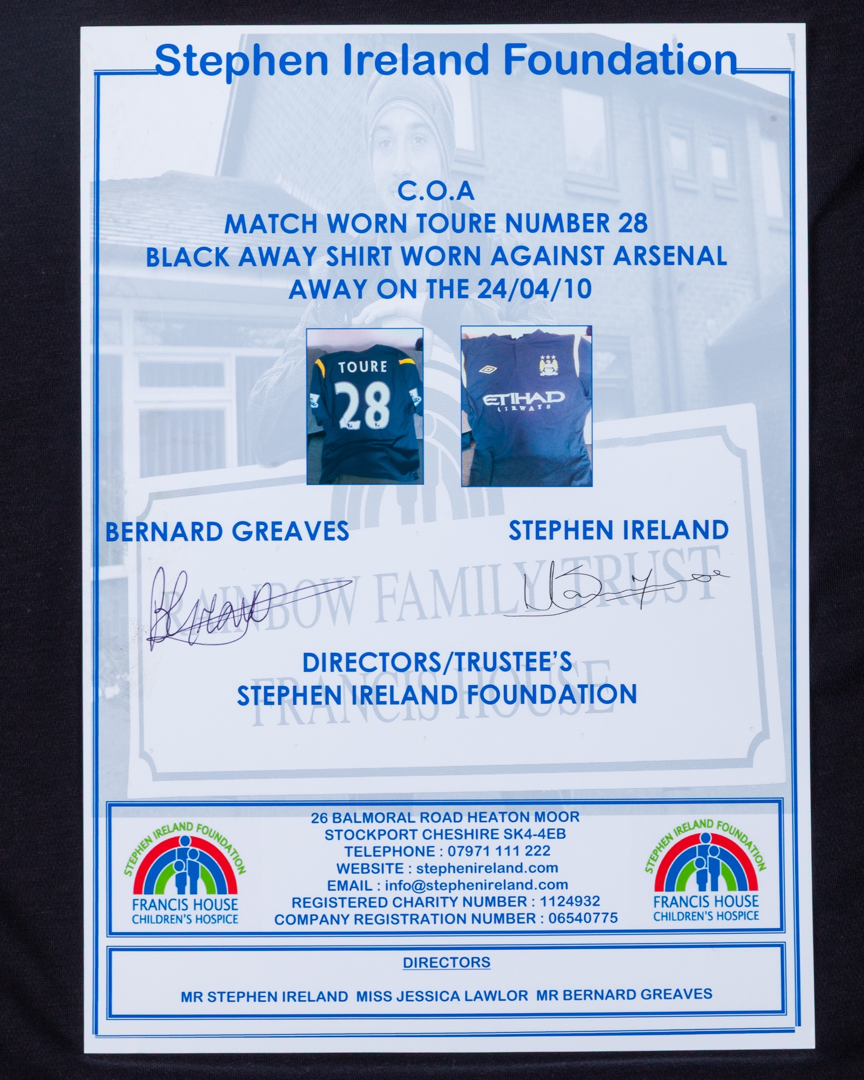 The above shirt was worn by Toure in the match against Arsenal played on 24th April 2010, the match ending in a 0-0 draw
