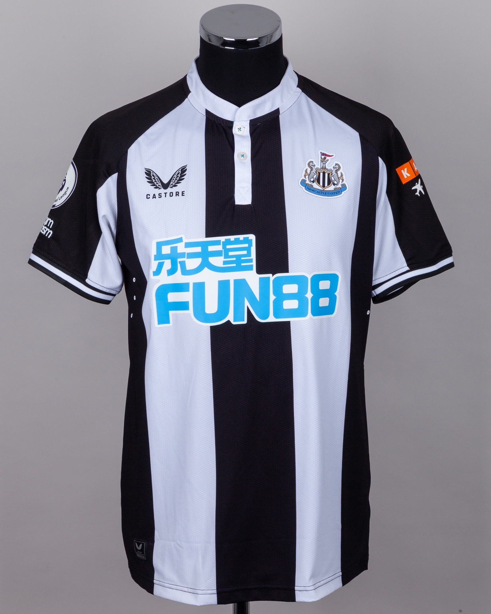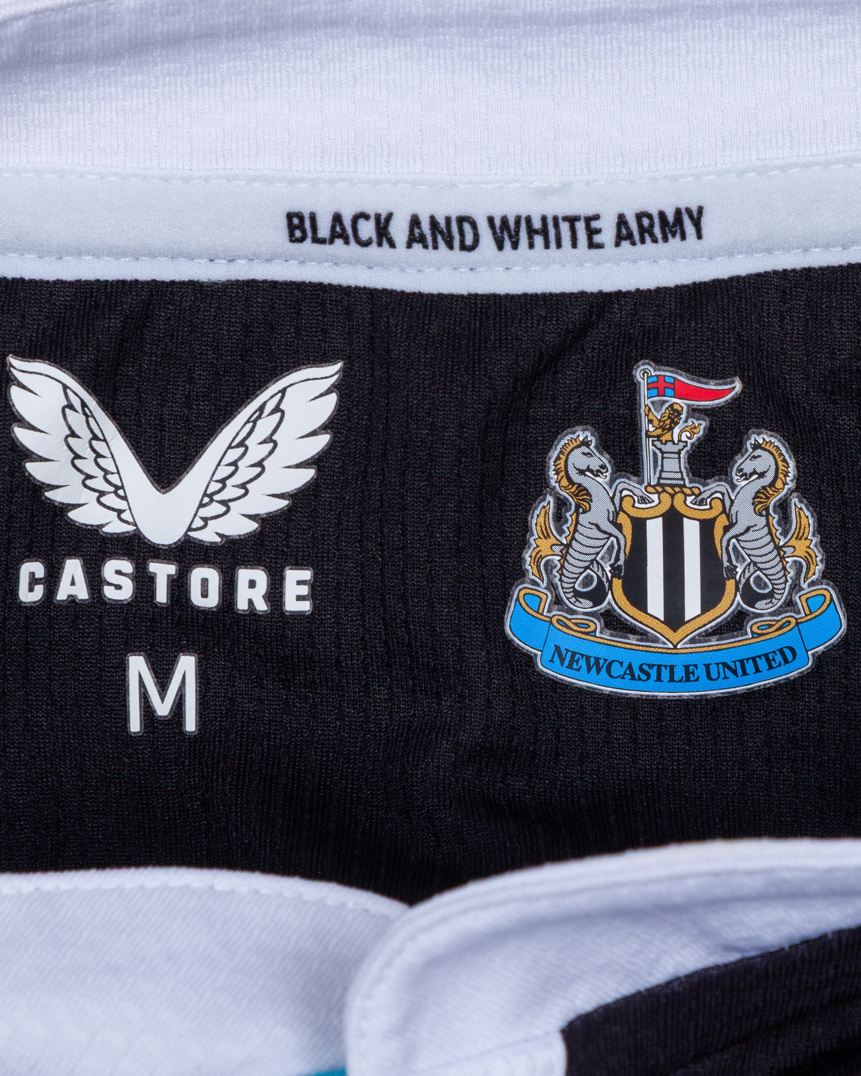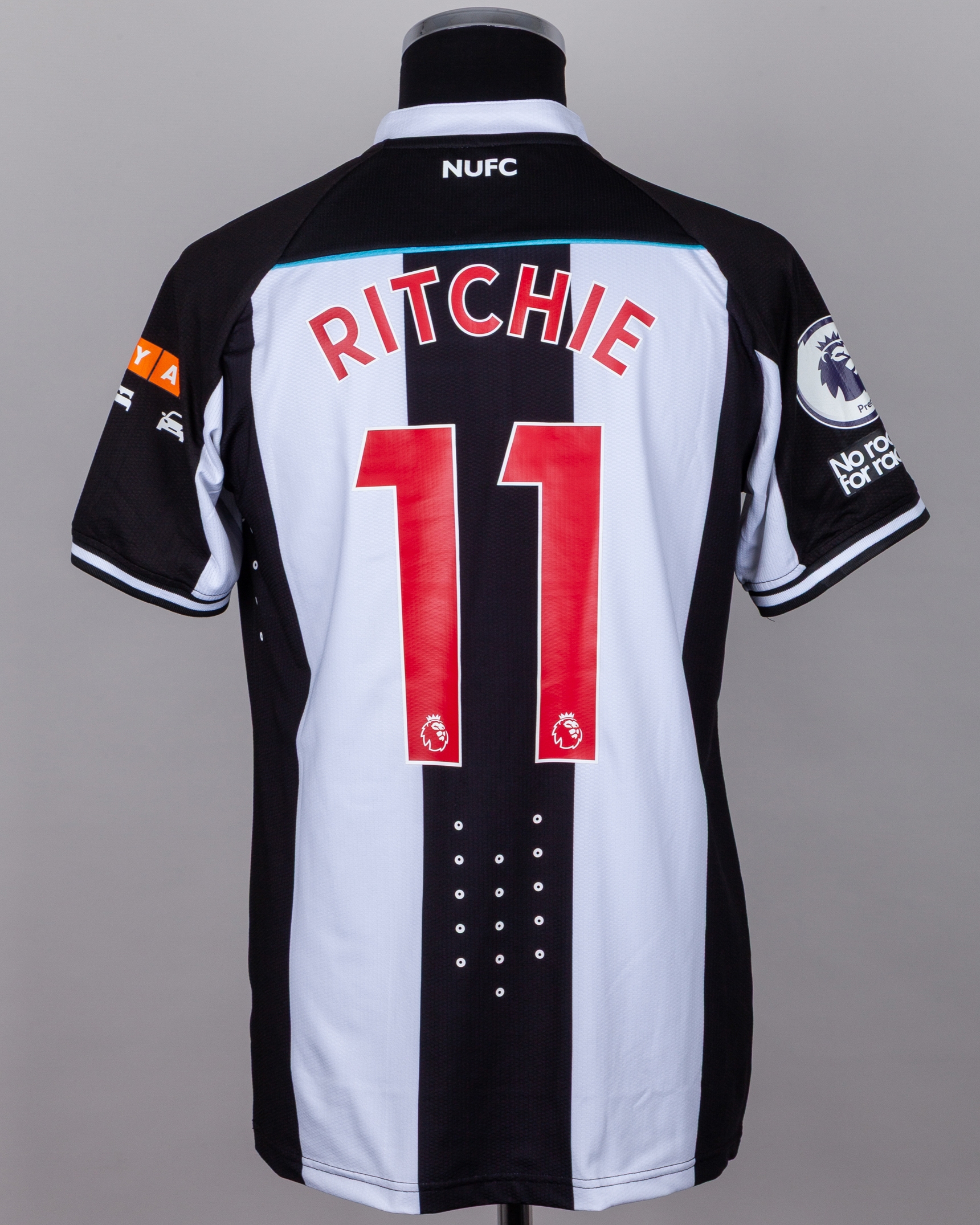 Matt Ritchie black and white No.11 Newcastle United short-sleeved shirt, 2021-22, Castore, M, with button-up collar and printed badge, the reverse lettered RITCHIE, the right sleeve with Premier League flash