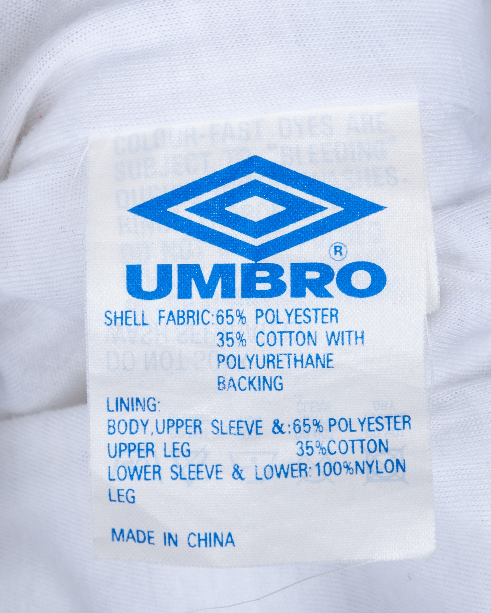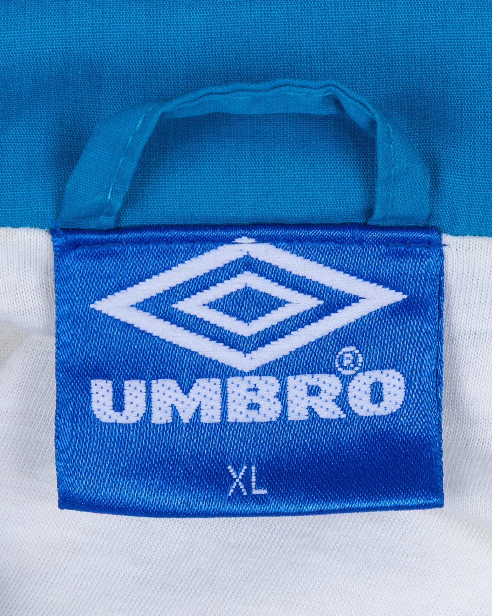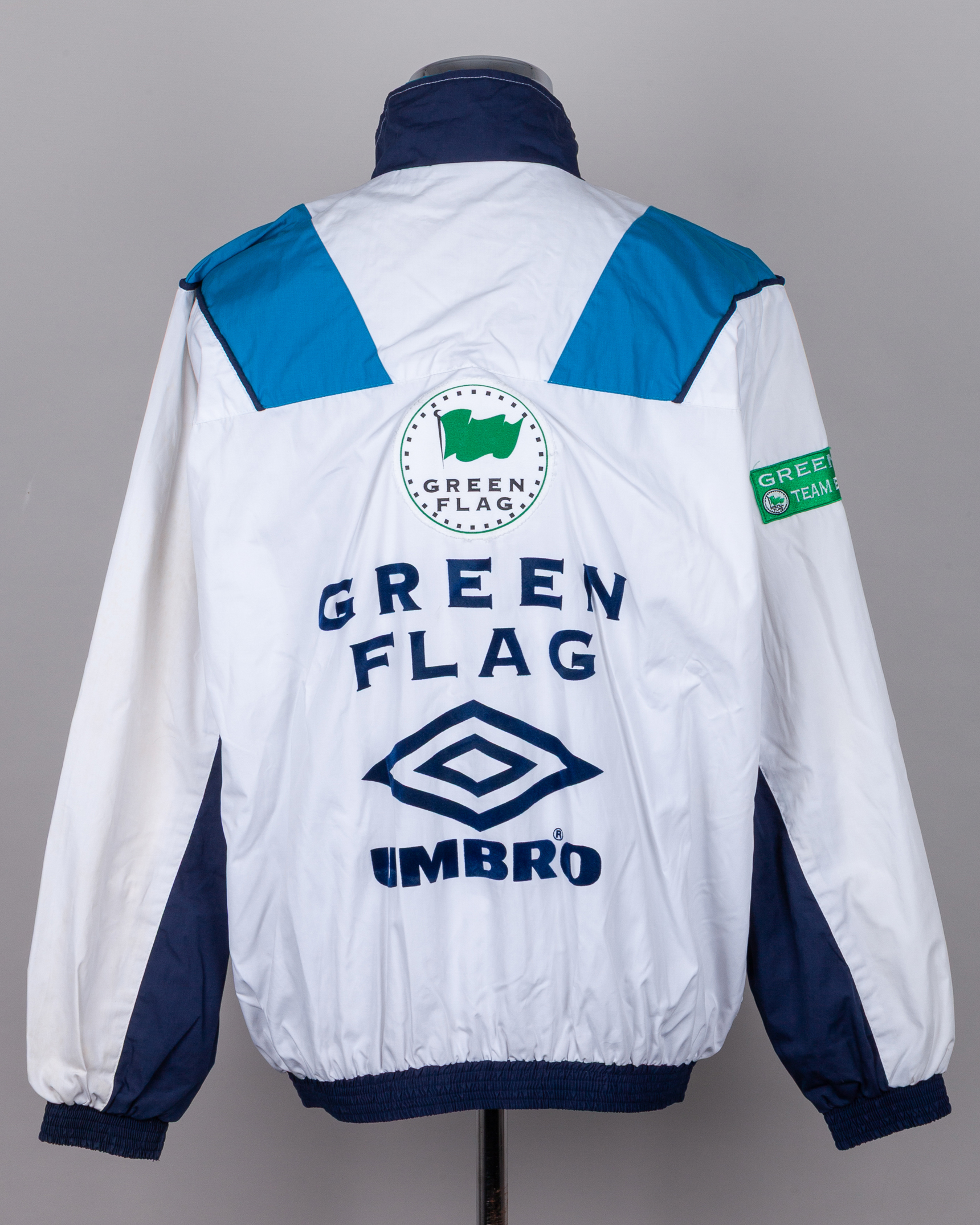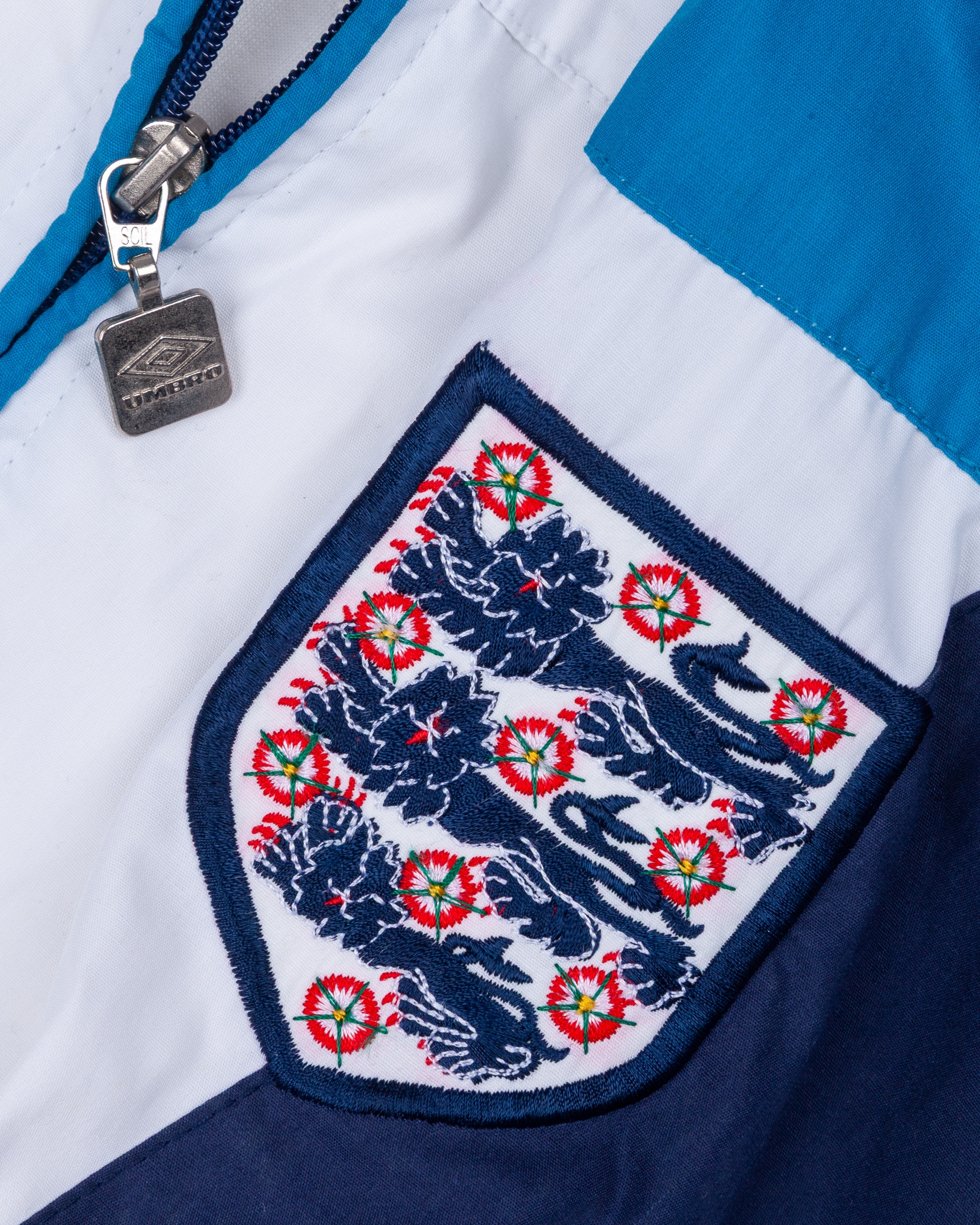 Alan Thompson blue and white England tracksuit top, 2004, Umbro, XL, with zip-up front and embroidered cloth badge, the back and sleeves with Sponsors logos, with COA