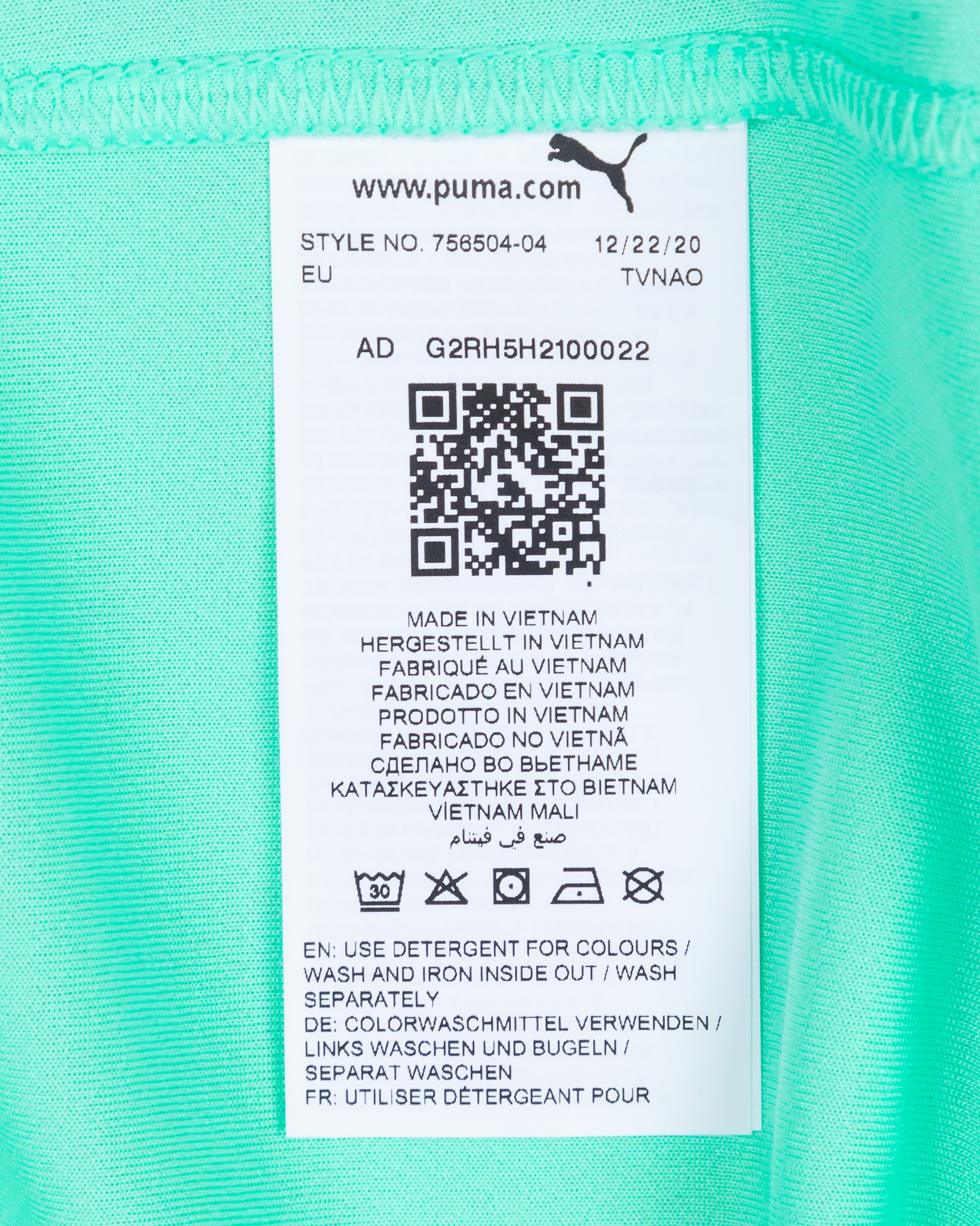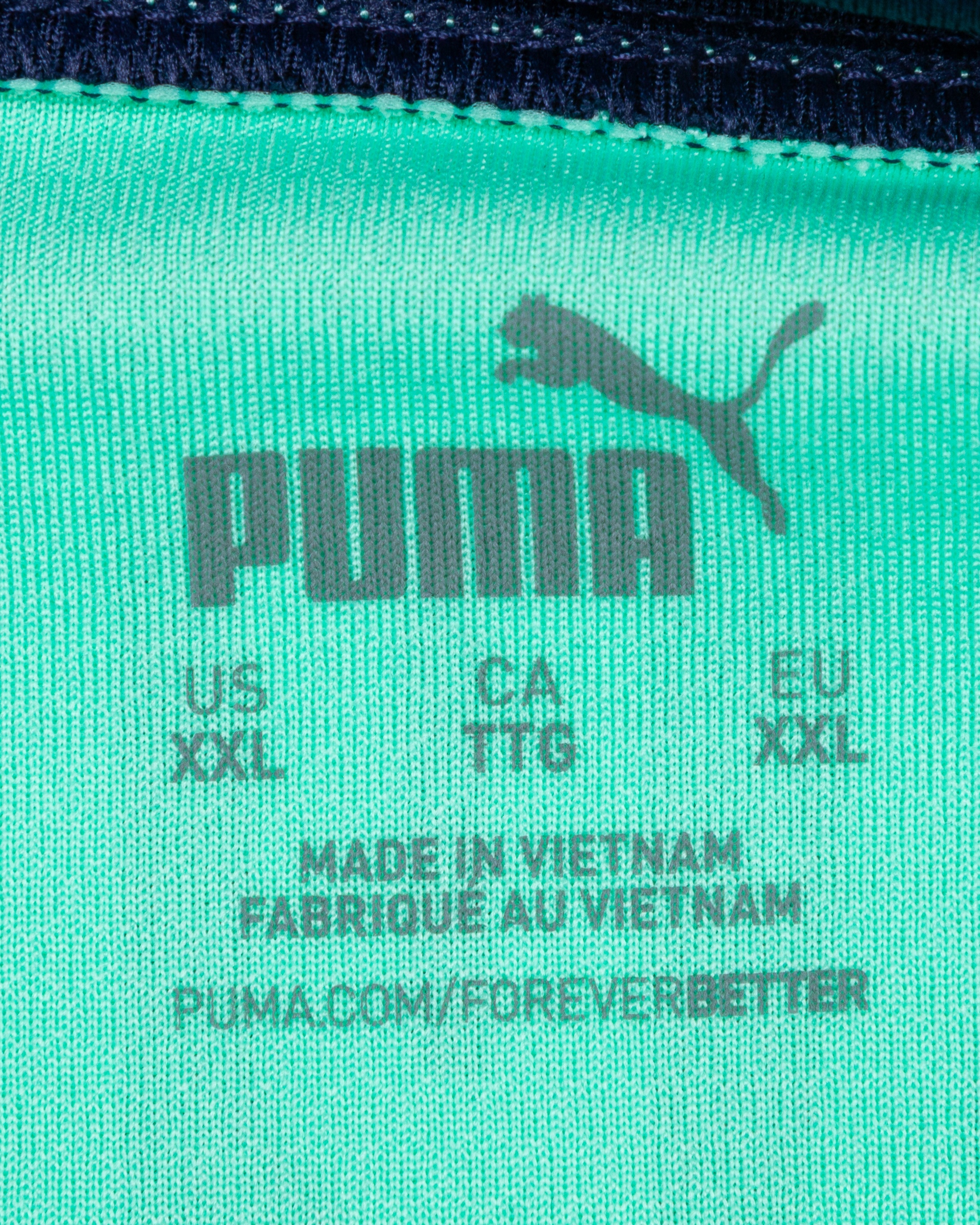 Gianluigi Donnarumma green and blue No.21 Italy v. Austria match issued goalkeepers shirt, 2021, Puma, XXL, with v-neck collar and printed badge with flags of nations 26.06.2021 LONDRA, GB decal, the reverse lettered DONNARUMMA, the sleeves with Euro and UEFA Respect flashes
