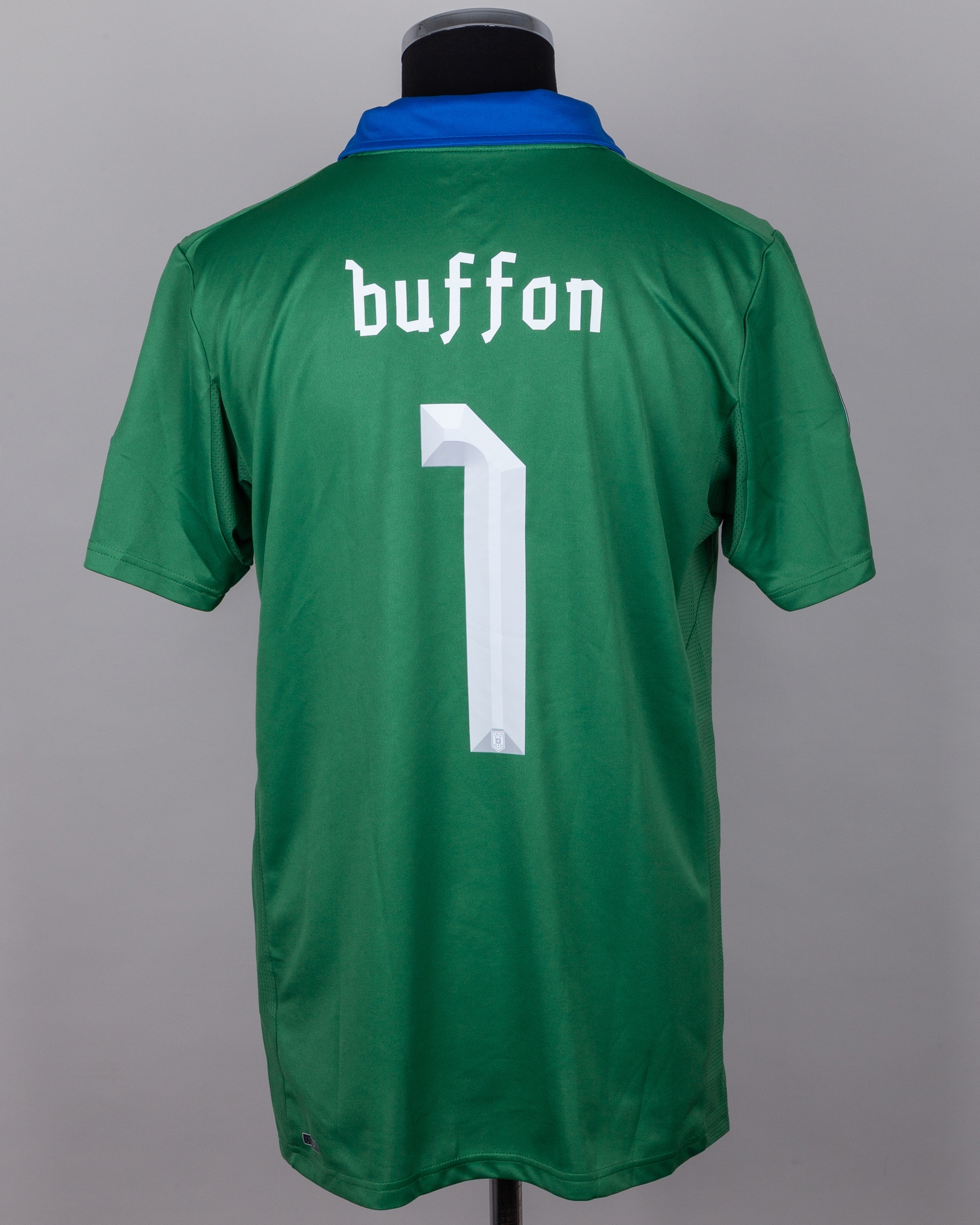 Gianluigi Buffon green and blue No.1 Italy v. England match worn short-sleeved shirt, 2012