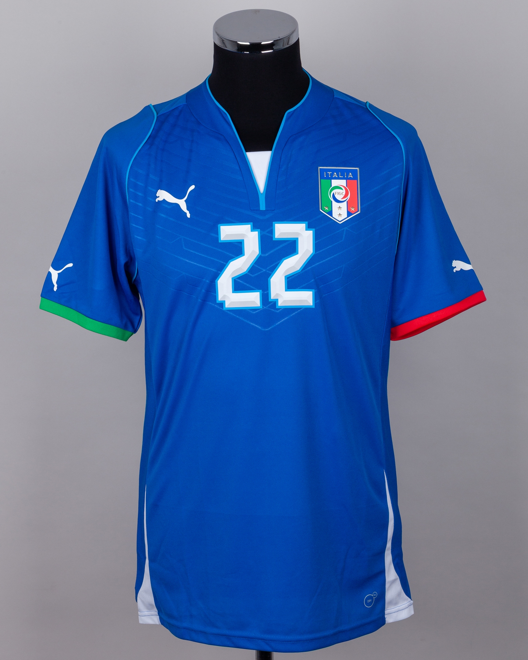 Alessandro Diamanti blue No.22 Italy v. Brazil match issued short-sleeved shirt, 2013