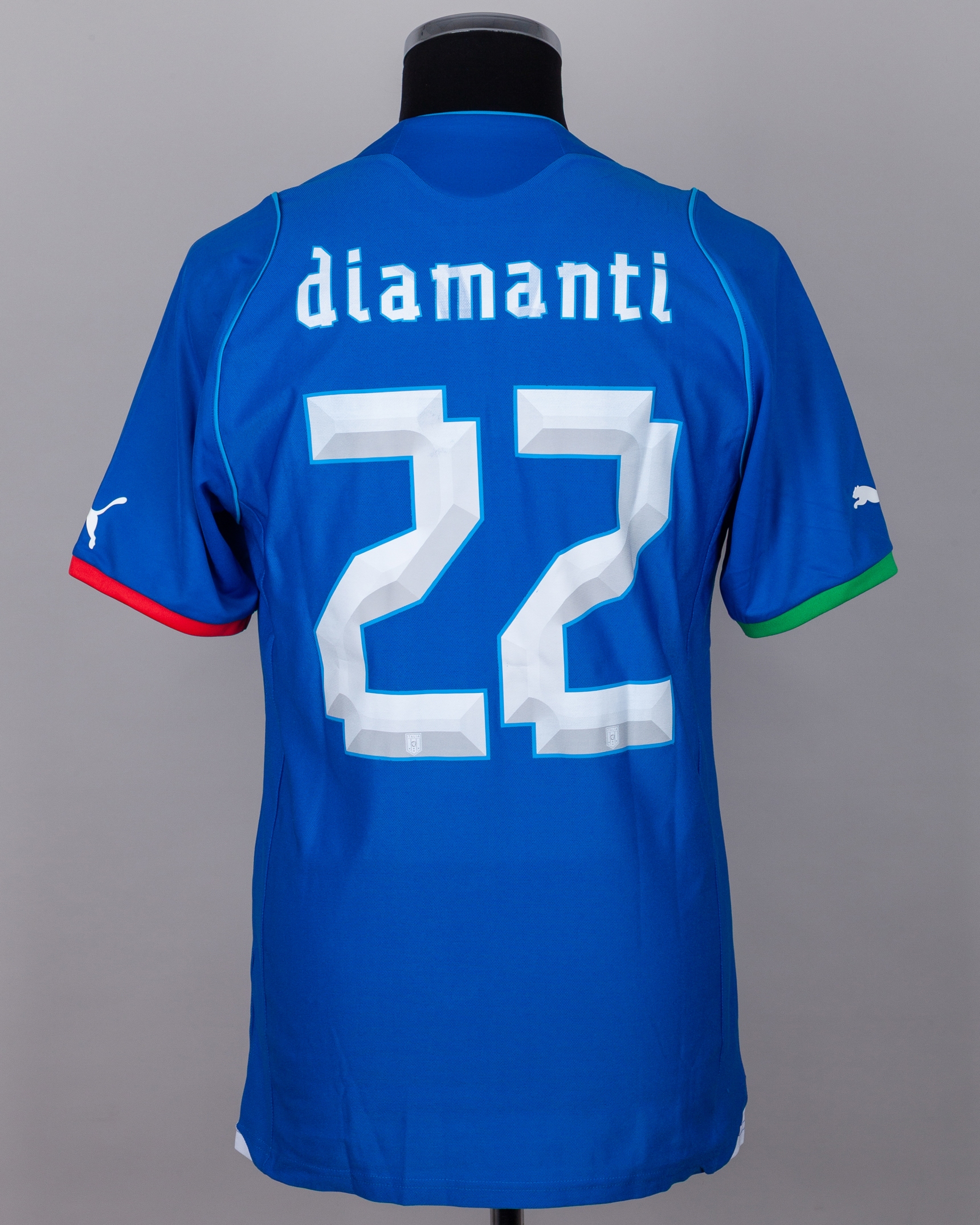Alessandro Diamanti blue No.22 Italy v. Brazil Special Friendly Tribute match issued short-sleeved shirt, 2013, Puma, L, with v-neck collar and printed badge, the reverse lettered Diamanti
