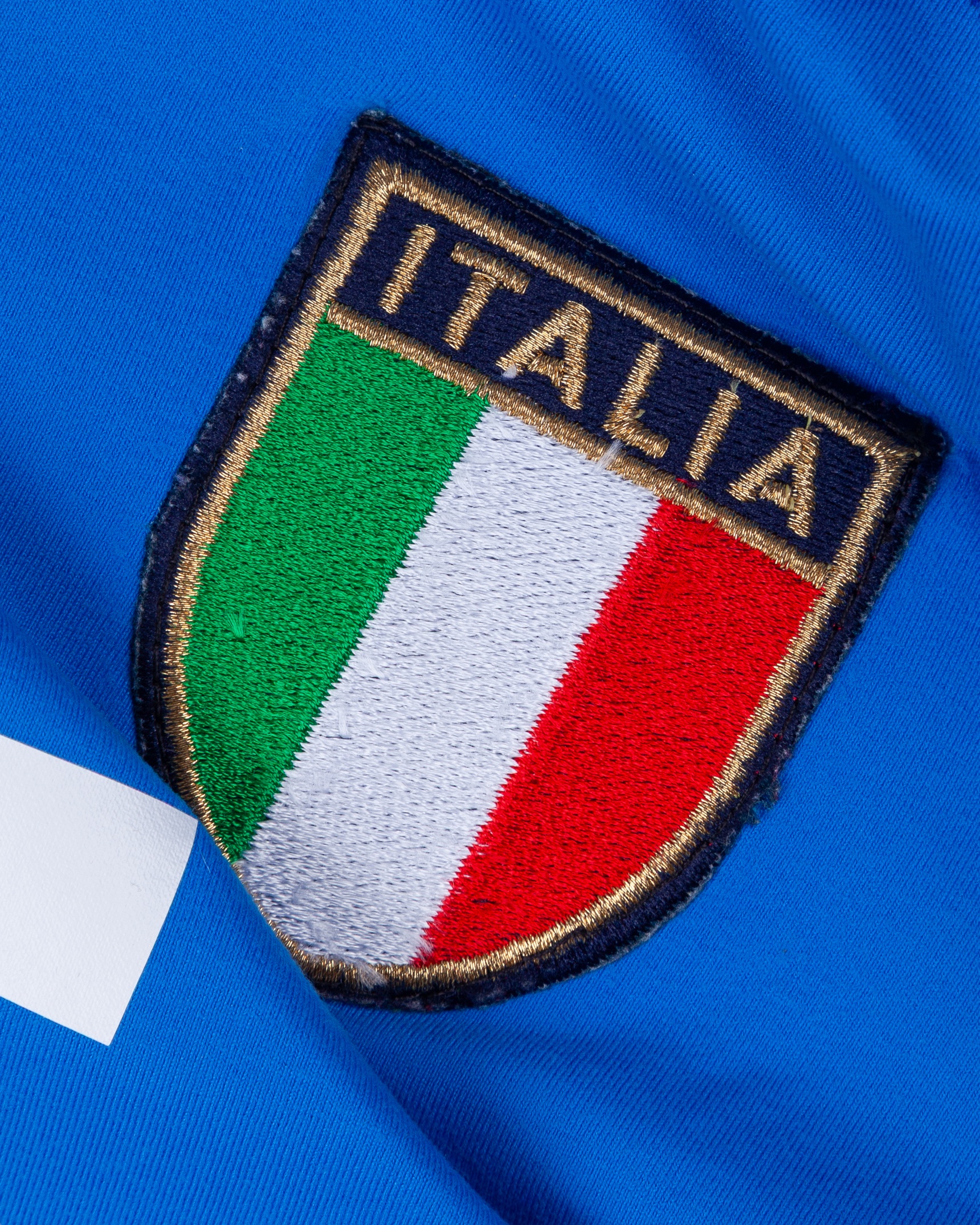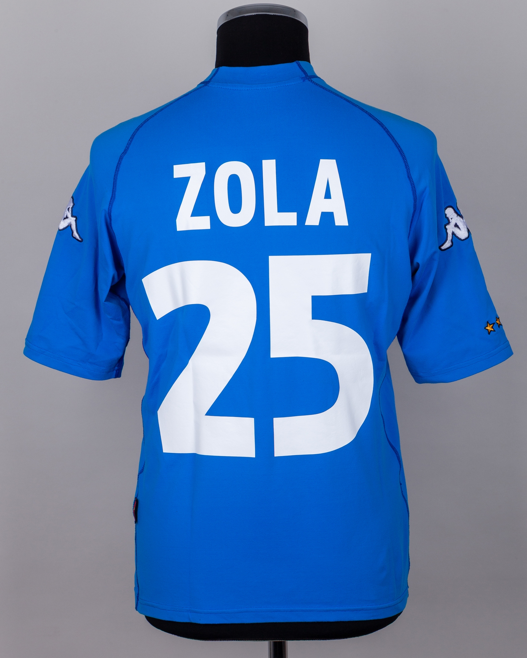 Gianfranco Zola blue No.25 Italy All Stars v. Roma match worn short-sleeved shirt, 2000, Kappa, with crew-neck collar and embroidered cloth badge inscribed ITALIA with further embroidered cloth badge, the reverse lettered ZOLA