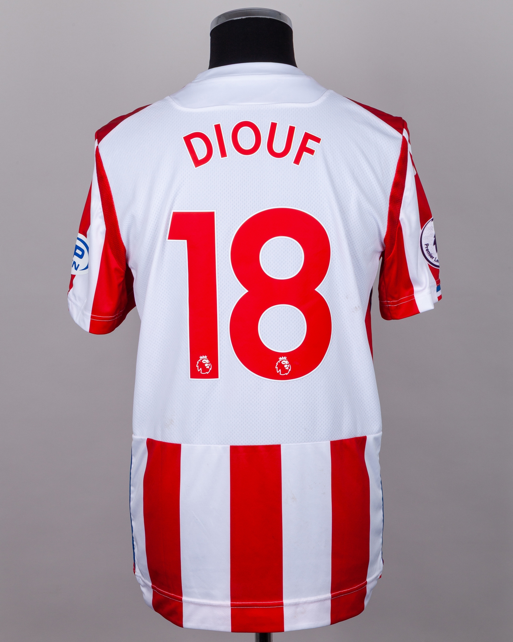 Mame Biram Diouf red and white No.18 Stoke City match worn short-sleeved shirt, 2017-18