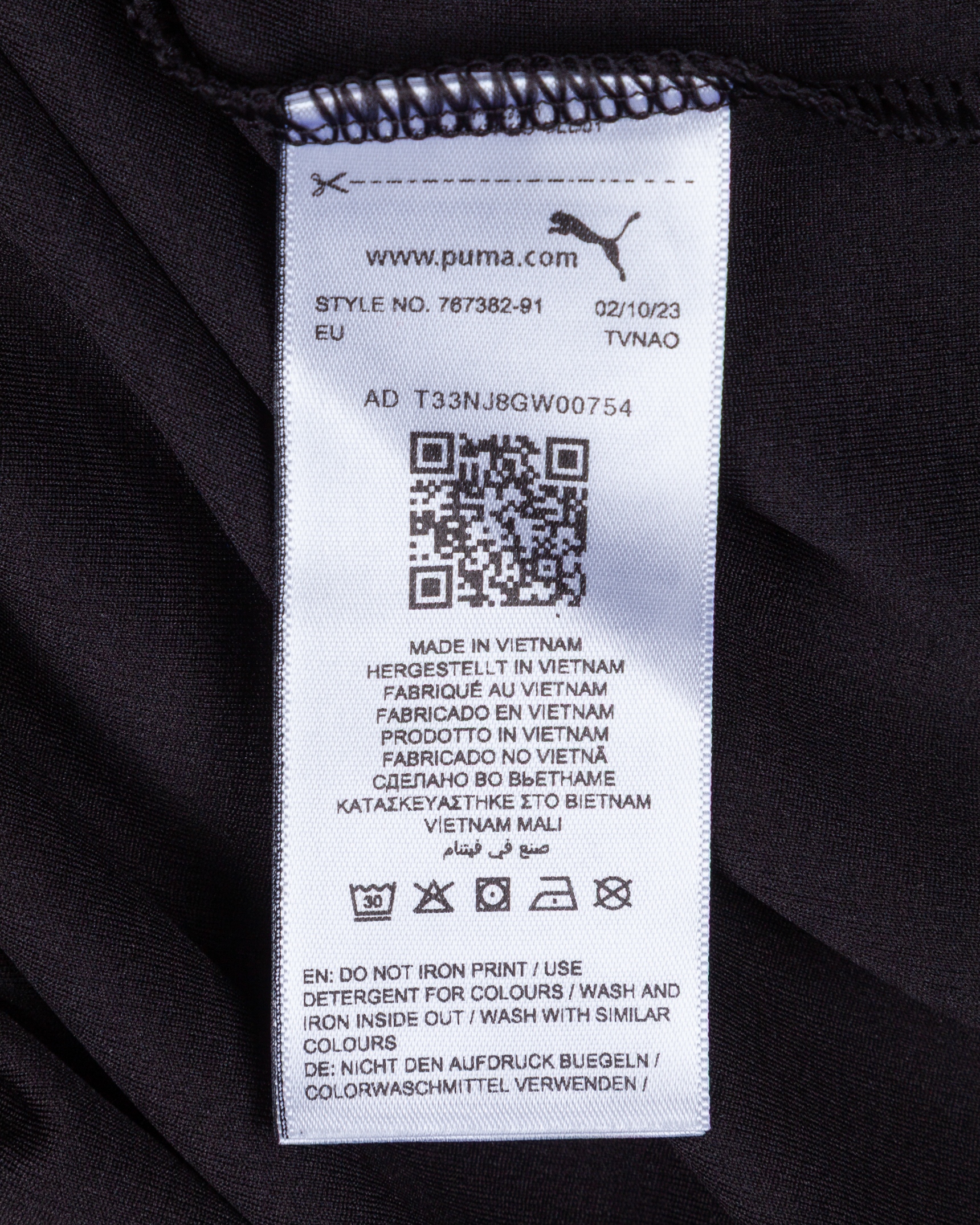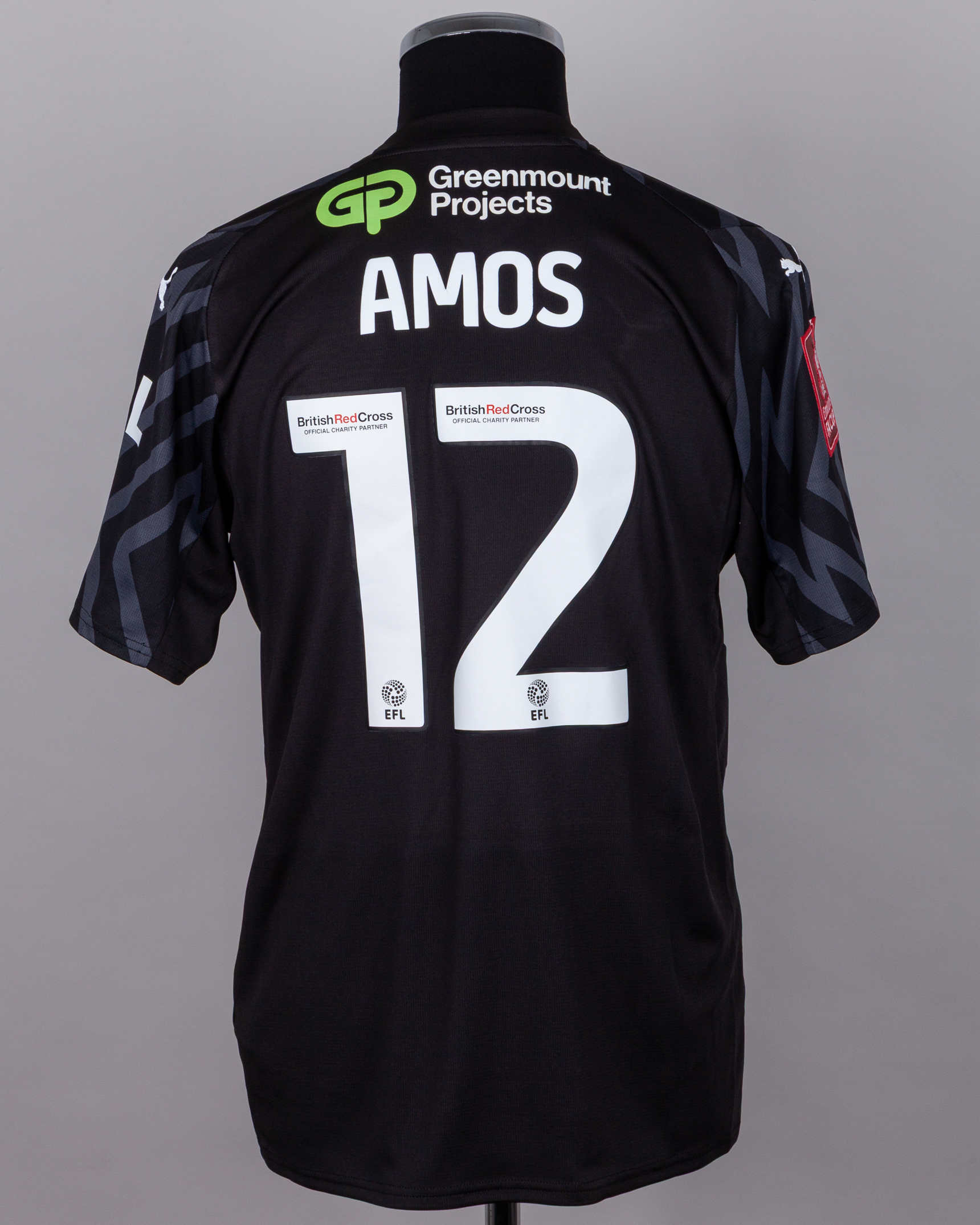 Ben Amos black No.12 Wigan Athletic v. Manchester United goalkeeper shirt, 2024, Puma, L, with v-neck collar and printed badge, the reverse lettered AMOS, the right sleeve with Emirates FA Cup flash