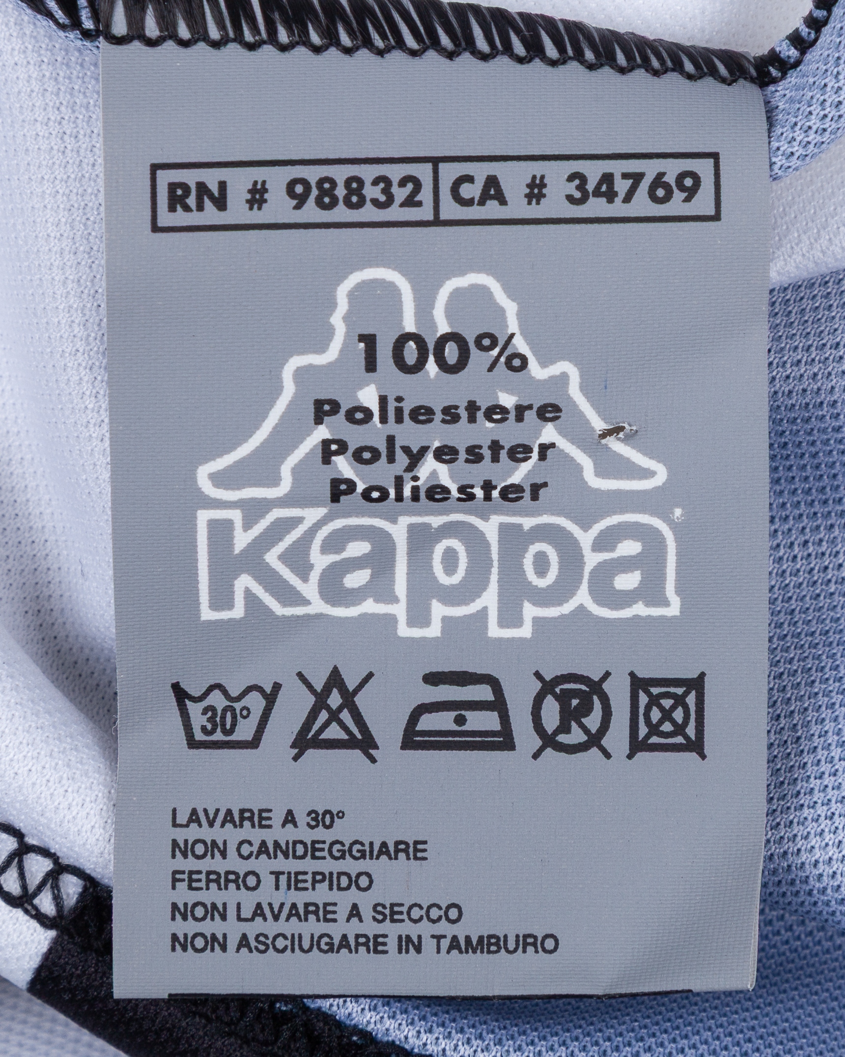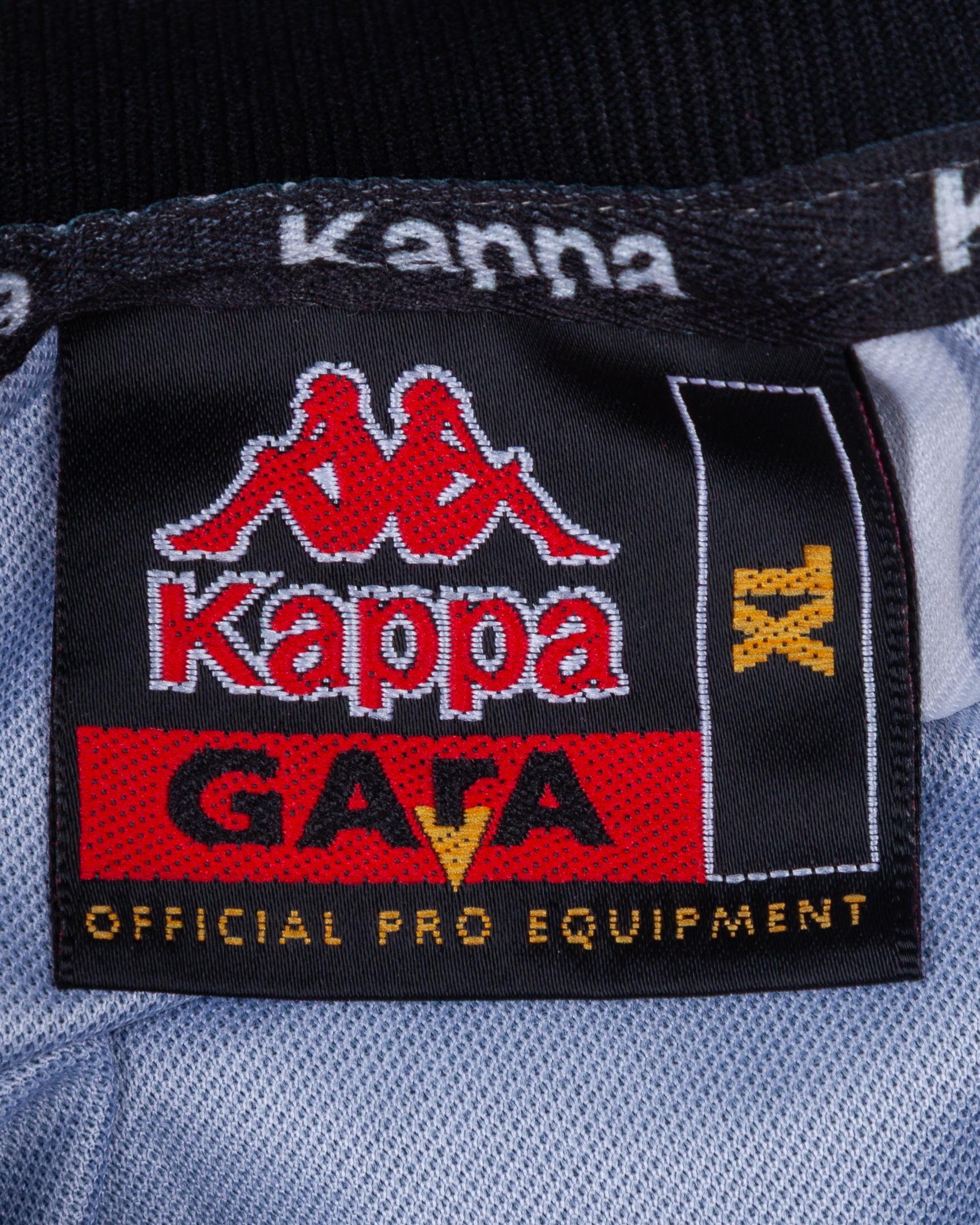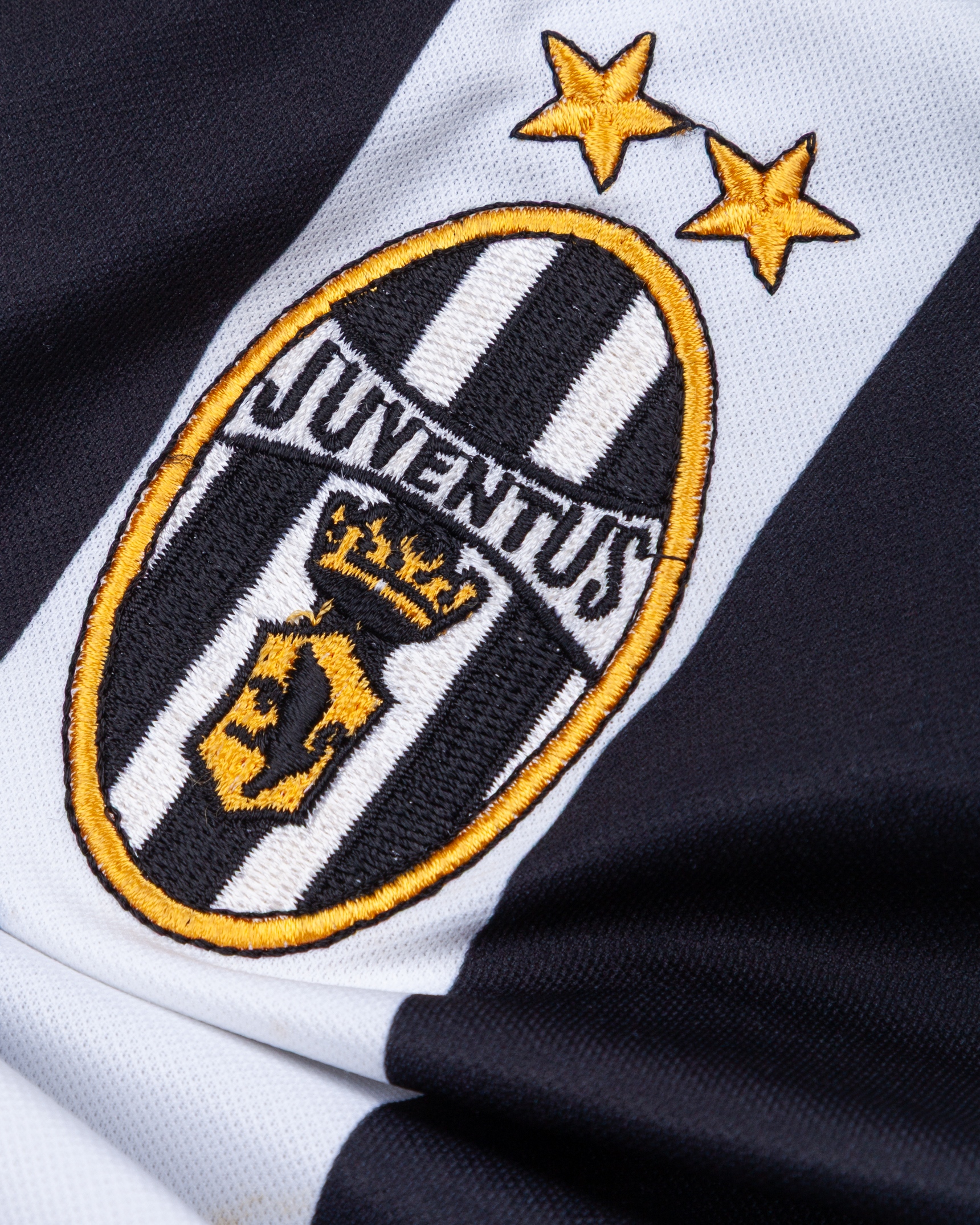 Filippo Inzaghi black and white No.9 Juventus long-sleeved shirt, Kappa, XL, with v-neck collar and embroidered badge inscribed JUVENTUS, the numbered autographed by Inzaghi, staining