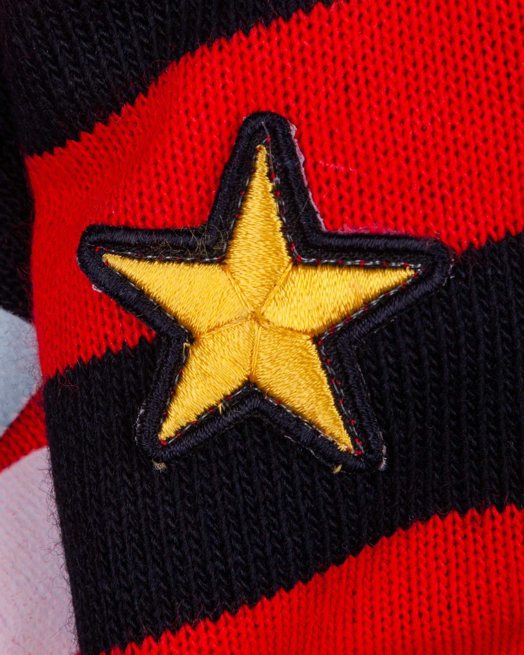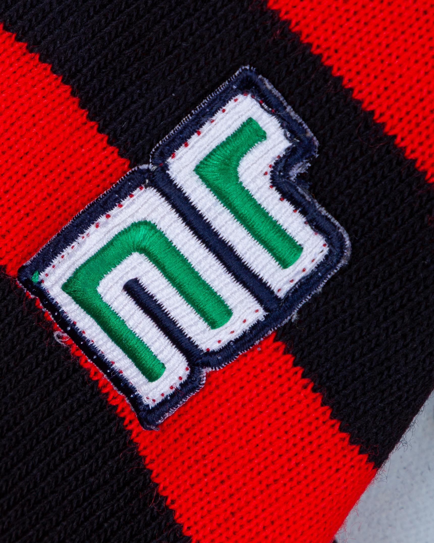 Red and black No.5 AC Milan short-sleeved shirt, 1983-84, Nicola Raccuglia, 52, with v-neck collar and embroidered cloth badge, with staining