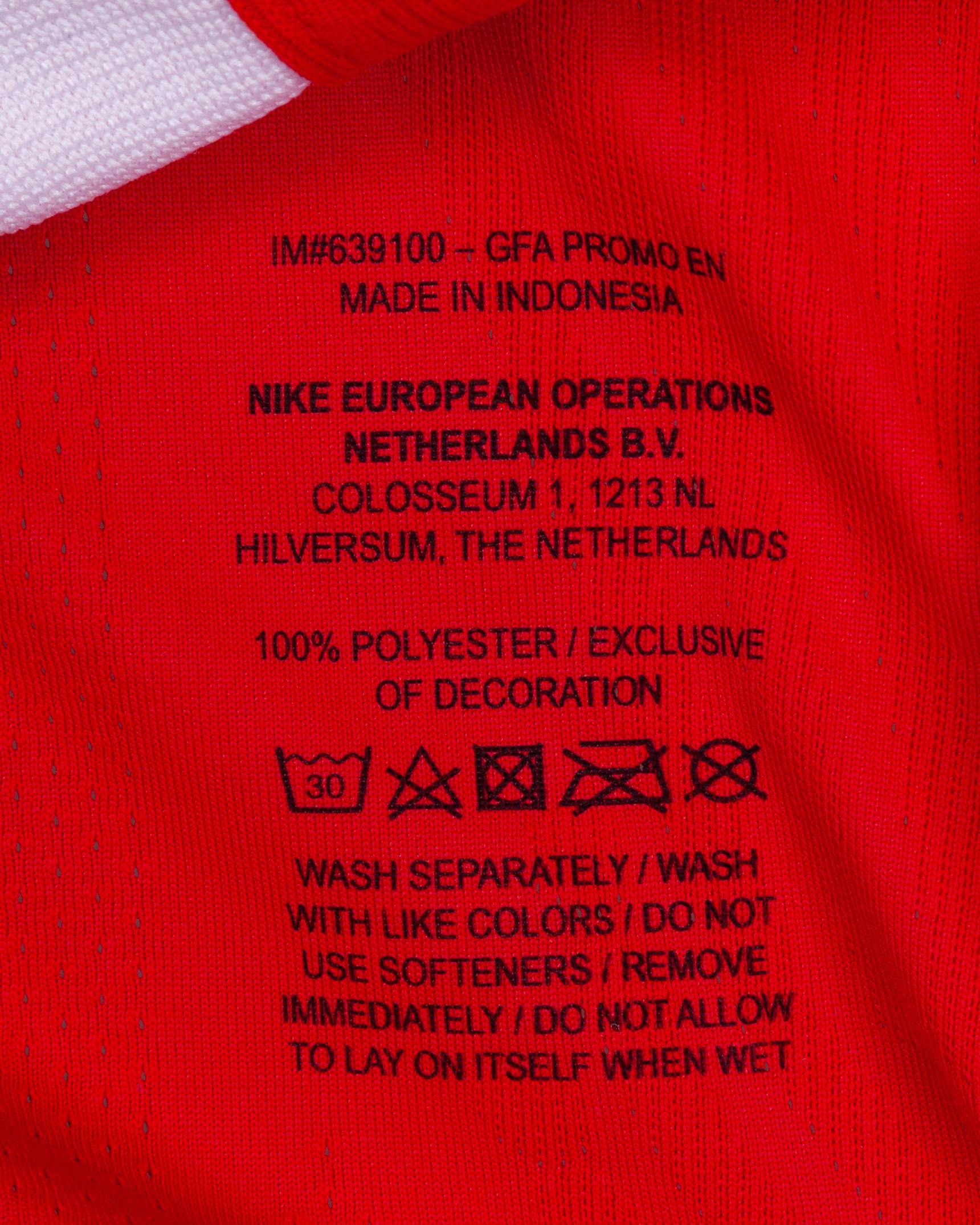 Curtis Jones red and white No.17 Liverpool v. Tottenham short-sleeved shirt, 2020-21, Nike, L, with v-neck collar and printed badge, the reverse lettered JONES, the right sleeve with Premier League Champions 2019/20 flash