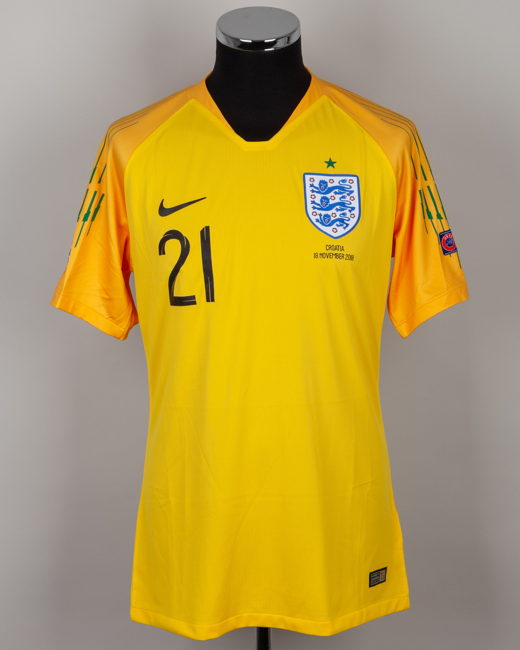 Alex McCarthy yellow and green No.21 England v. Croatia short-sleeved shirt, 2018