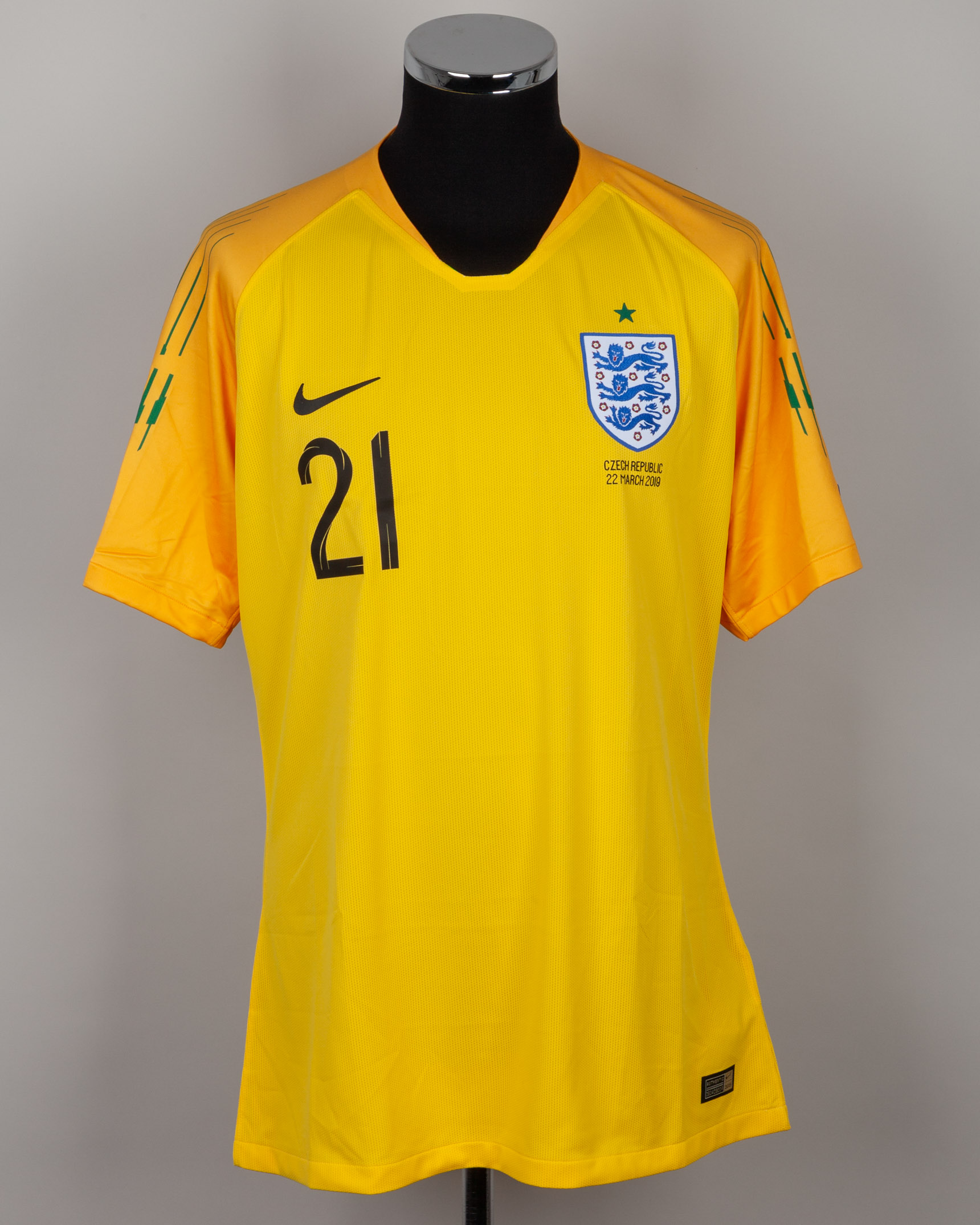 Jack Butland yellow and green No.21 England v. Czech Republic short-sleeved shirt, 2019