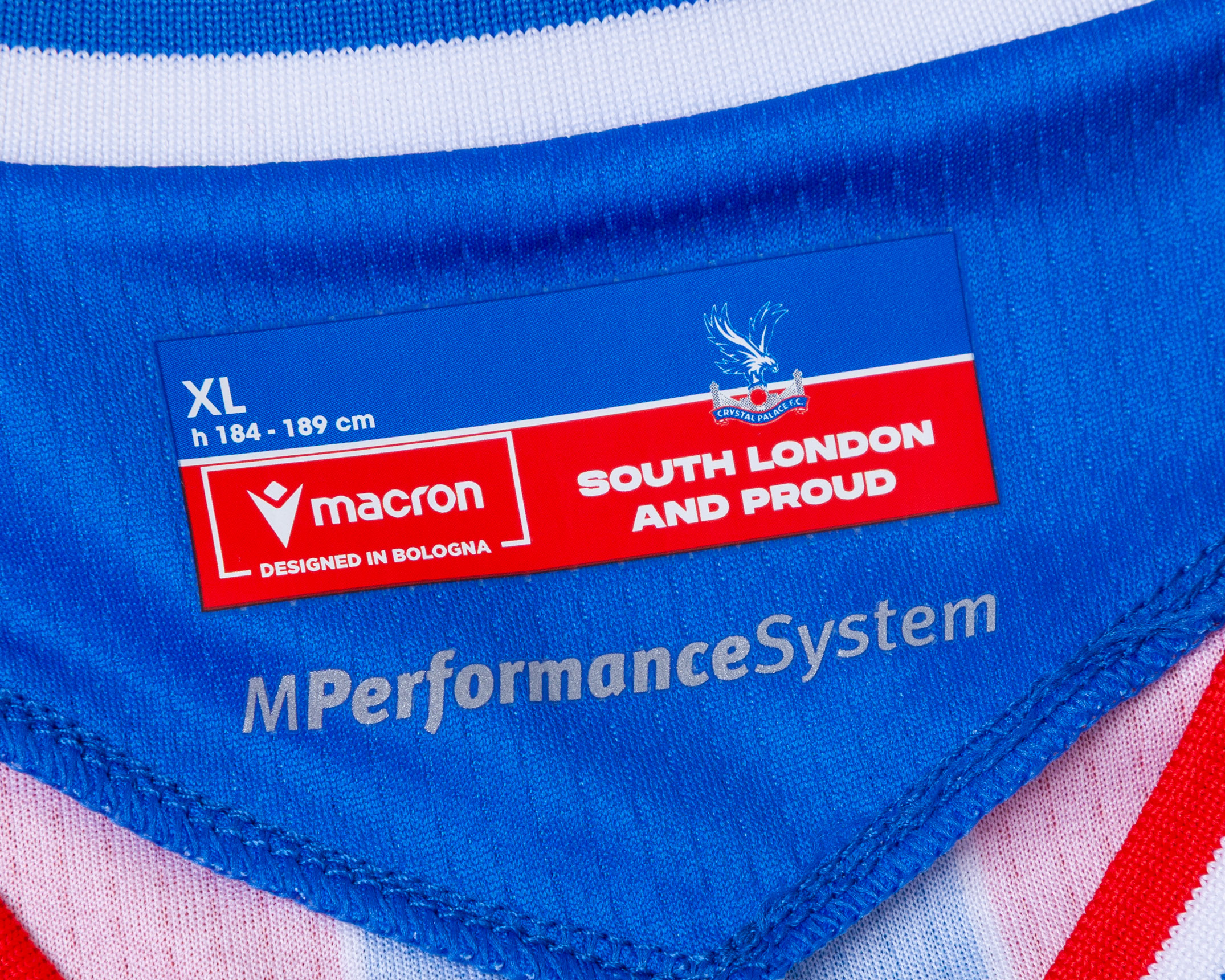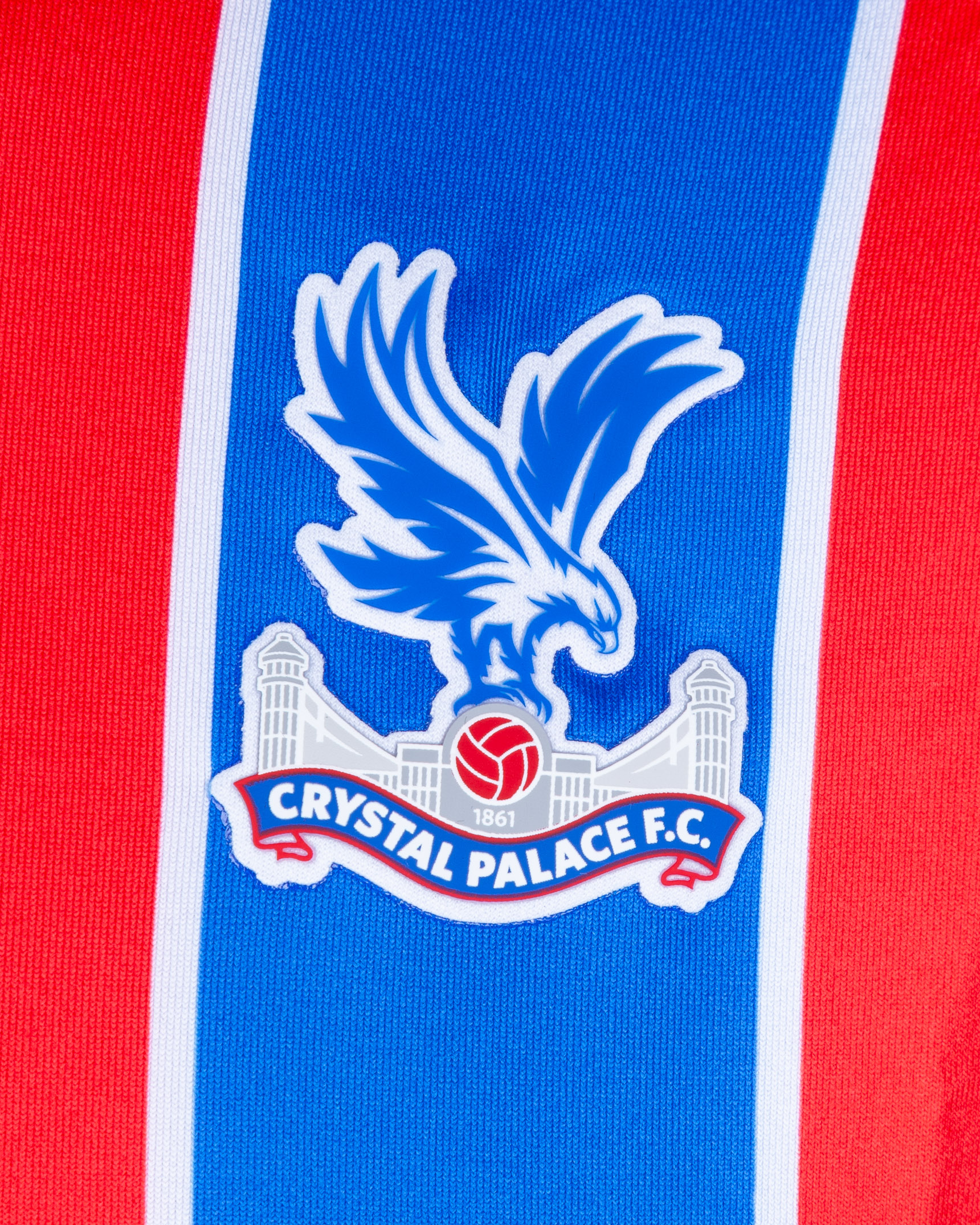 Red and blue Crystal Palace v. Dynamo Kyiv match issued squad signed shirt, UEFA Conference League 2025, Macron, with crew-neck collar and printed badge, the right sleeve with UEFA flash