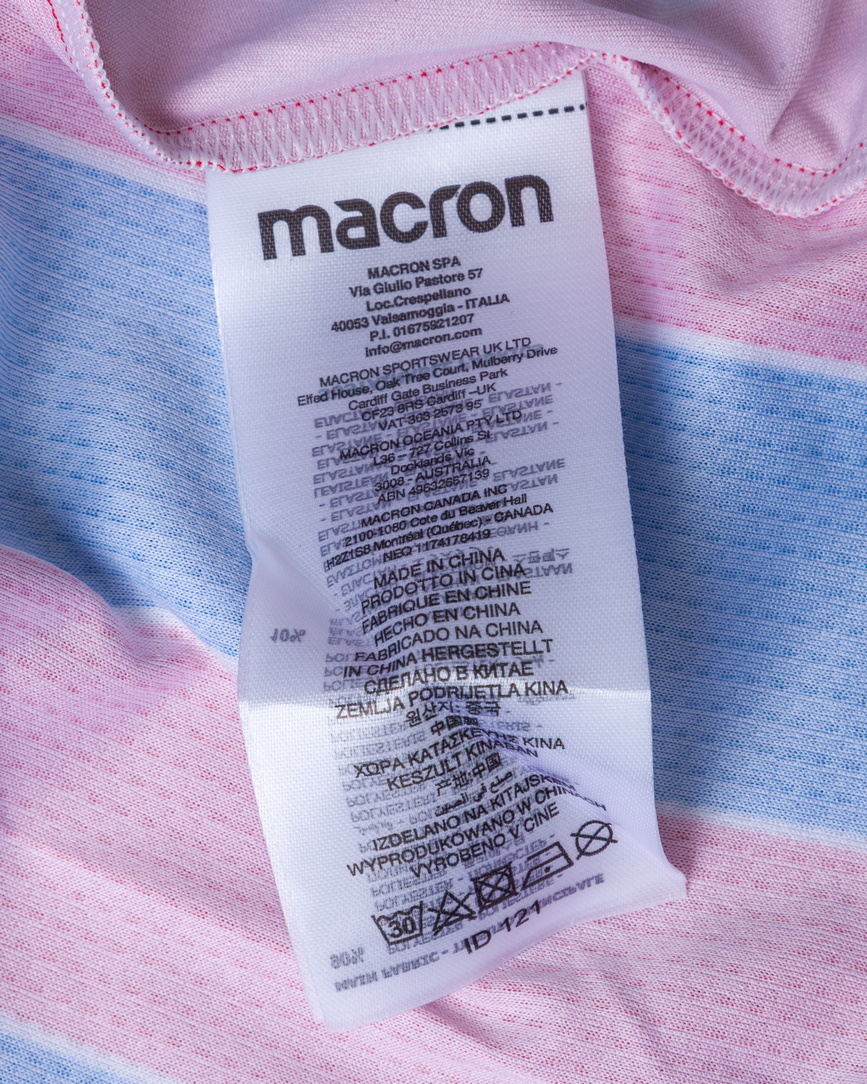 Will Hughes red and blue No.19 Crystal Palace v. Dynamo Kyiv match worn shirt, UEFA Conference League 2025, Macron, with crew-neck collar and printed badge, the reverse lettered HUGHES, the right sleeve with UEFA flash