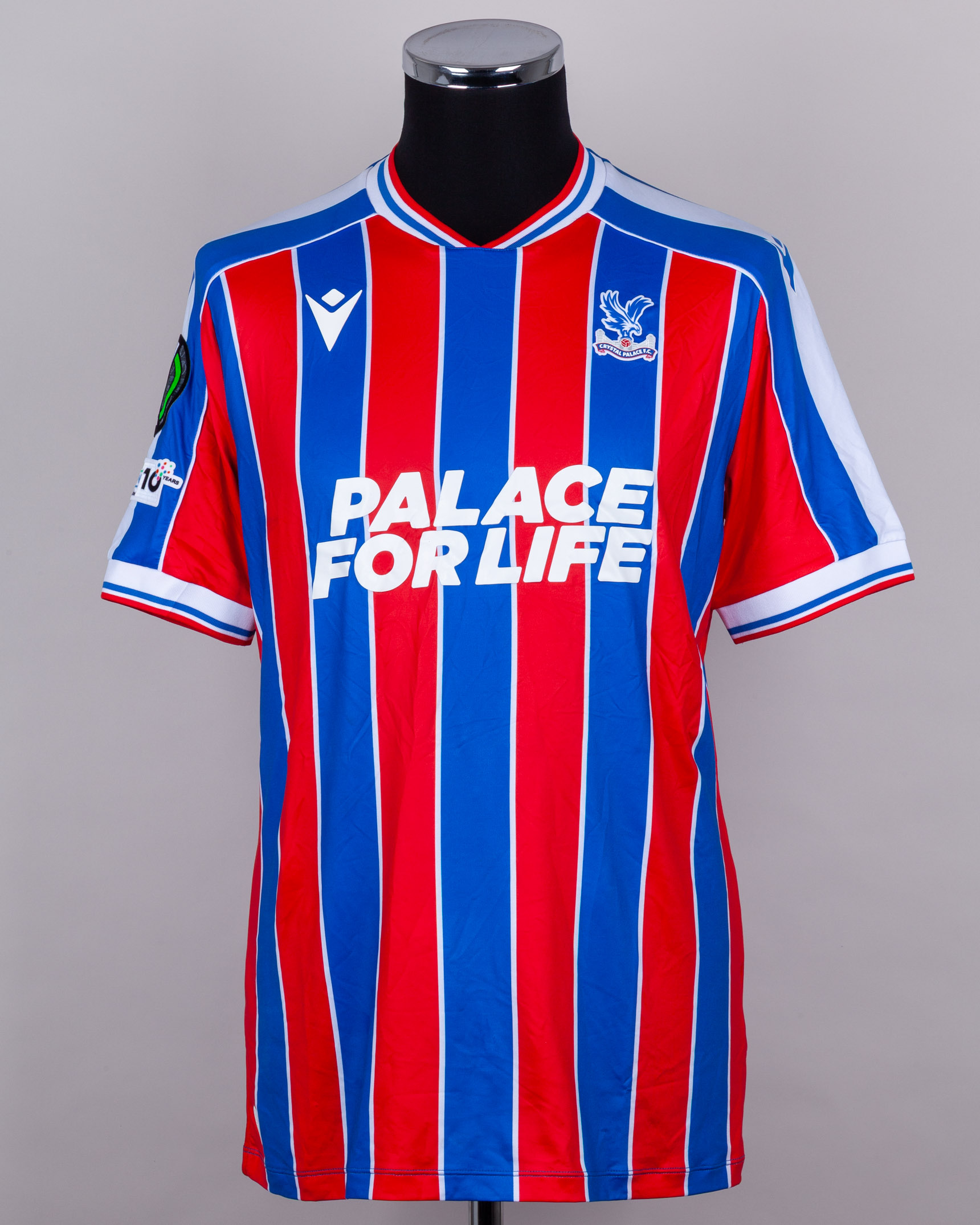 Maxence Lacroix red and blue No.5 Crystal Palace v. Dynamo Kyiv match worn shirt