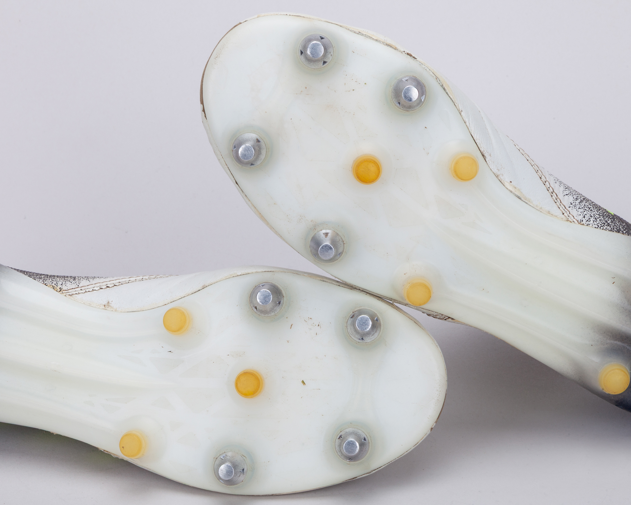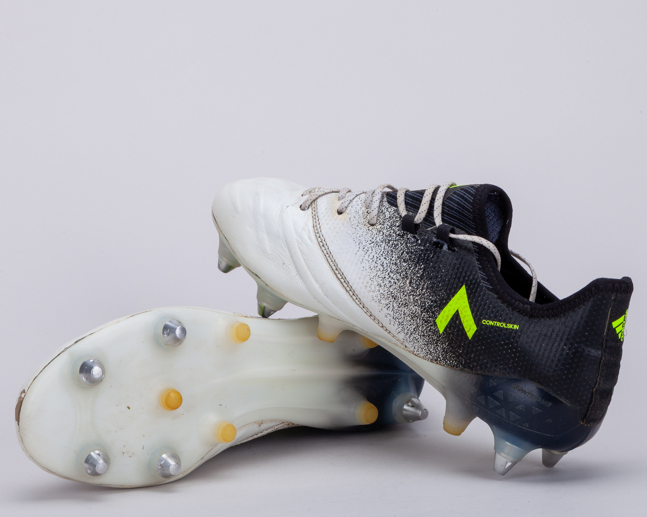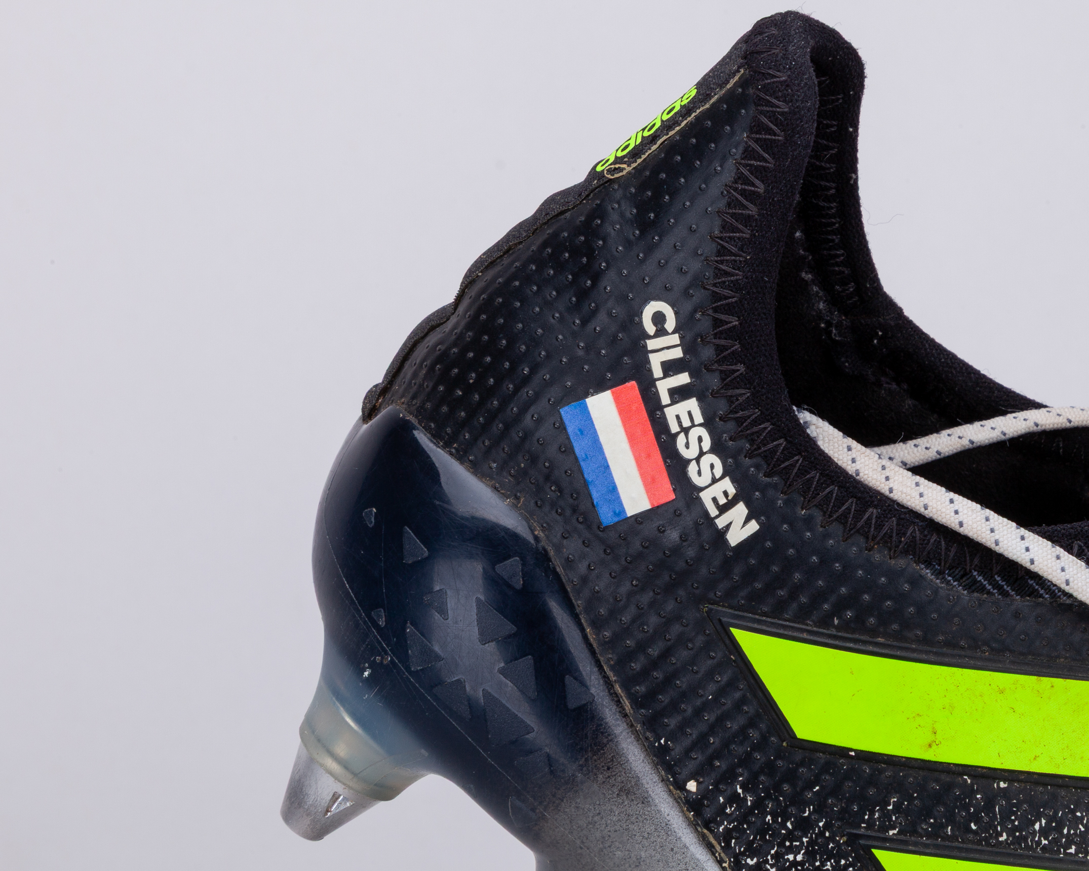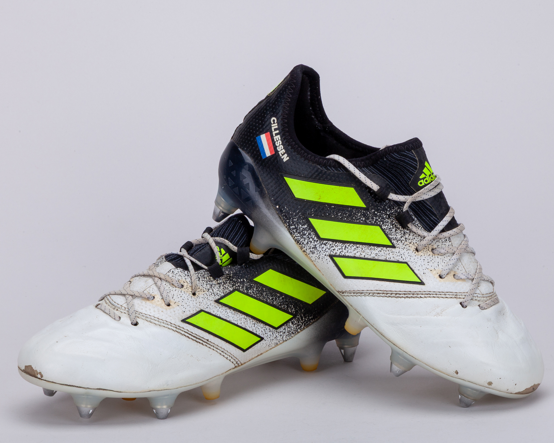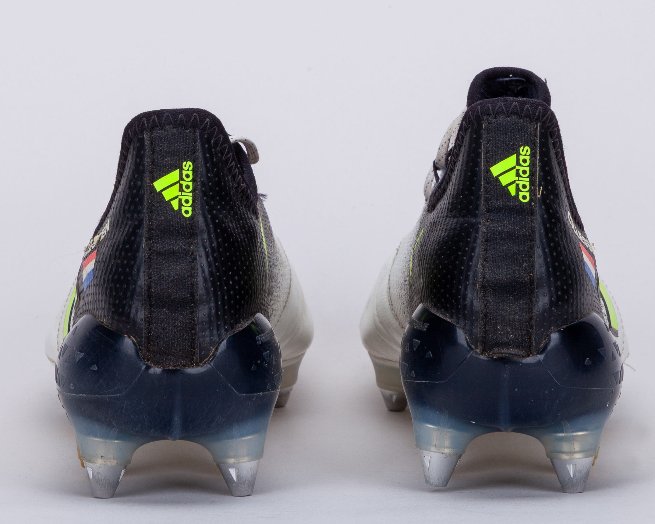 Jasper Cillessen white and black Adidas football boots, 2017-18, UK6.25, with CILLESSEN decal, with signs of wear, with decal rubbed