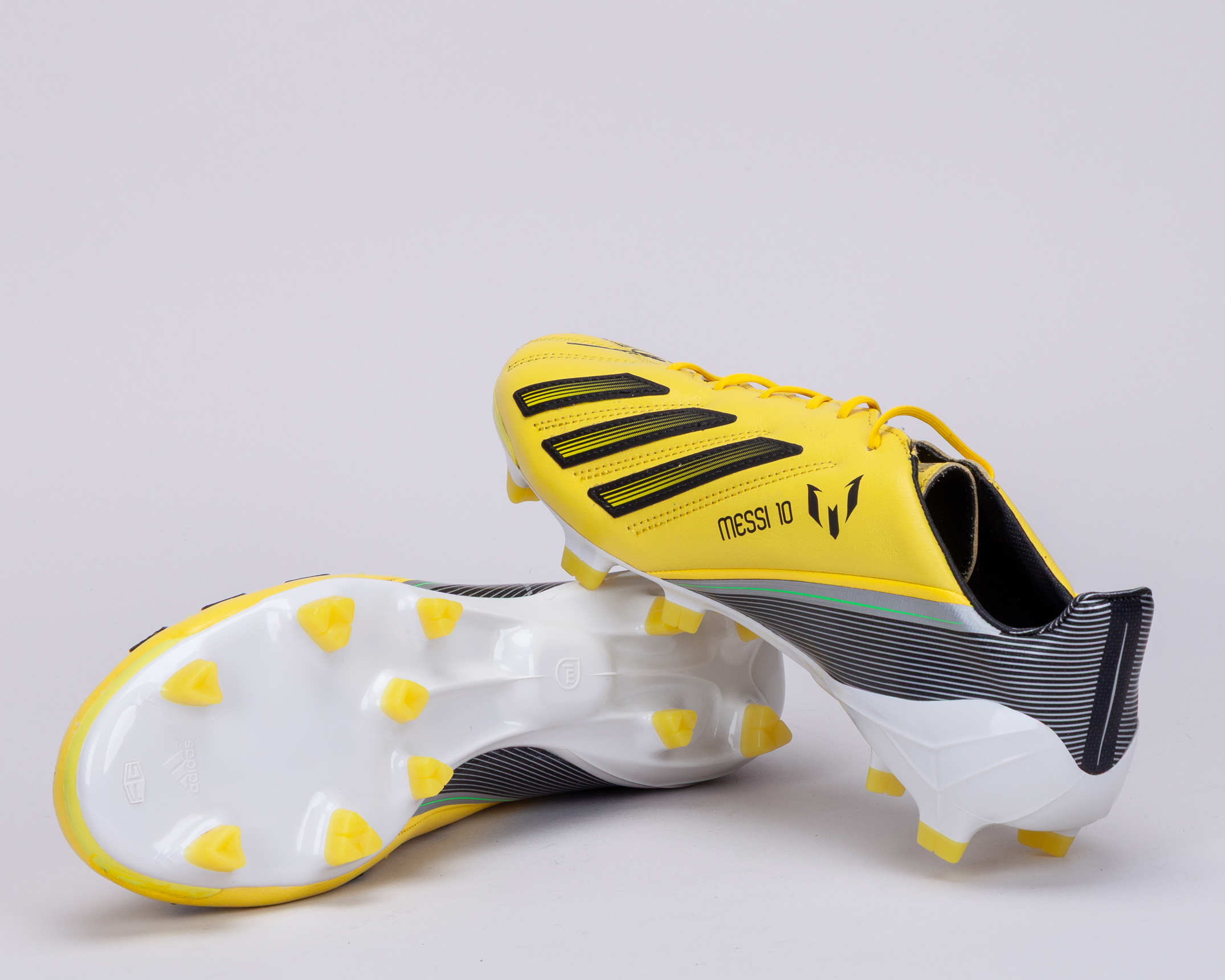 Lionel Messi a pair of yellow Adidas Adizero f50 autographed football boots
