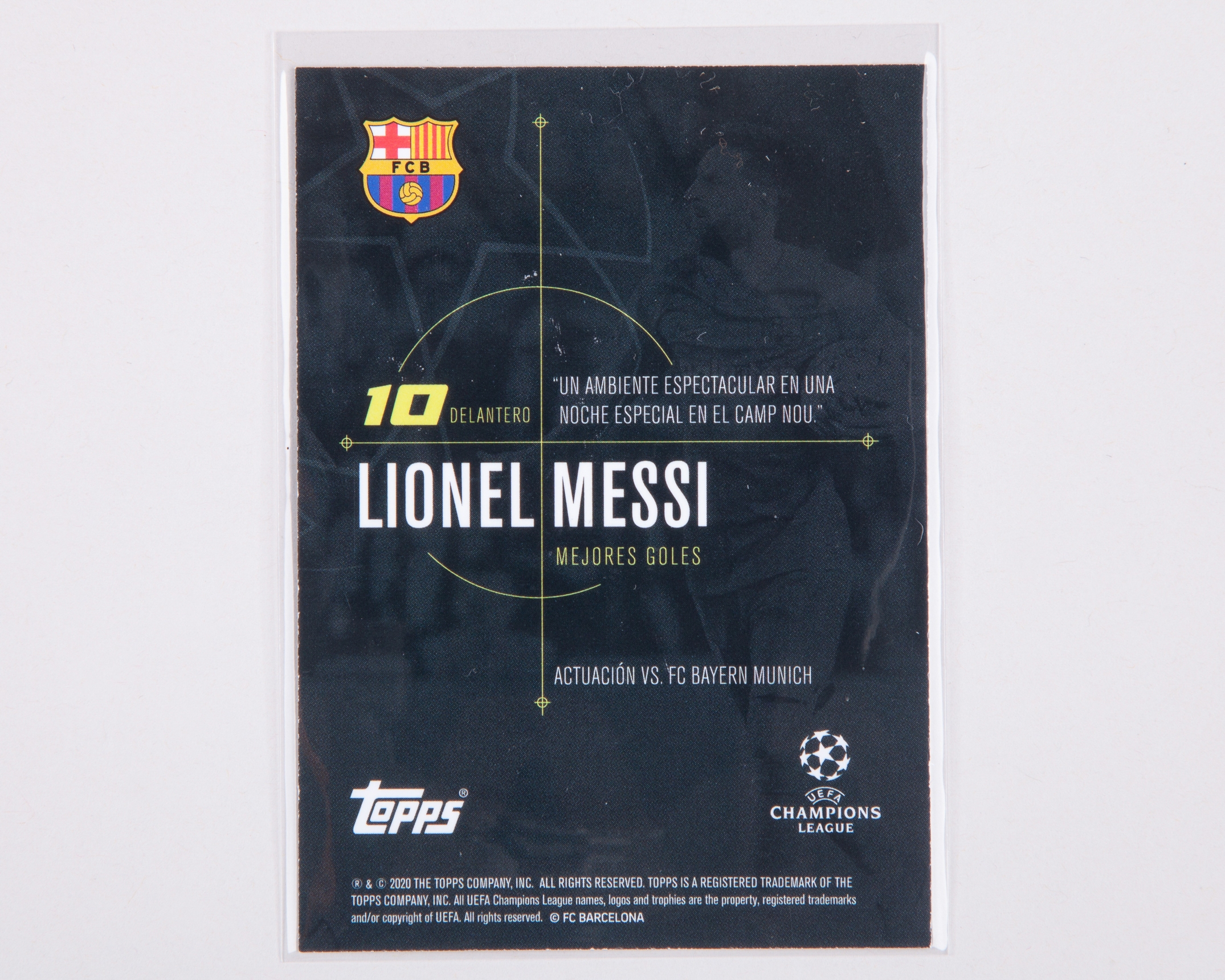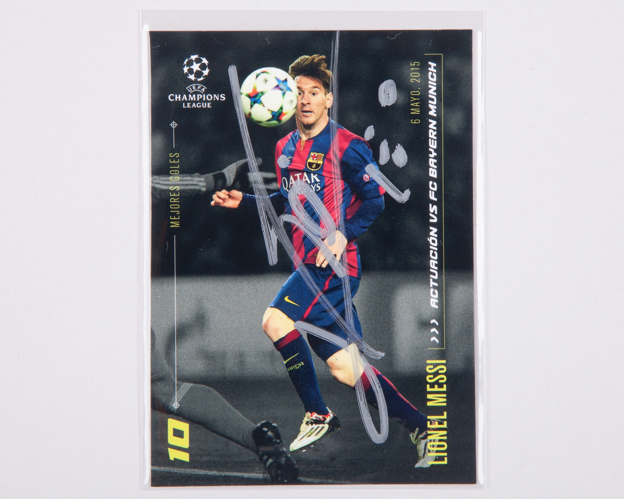 Lionel Messi autographed Barcelona Champions League Topps Mejores Goles trading card, 6th May 2015