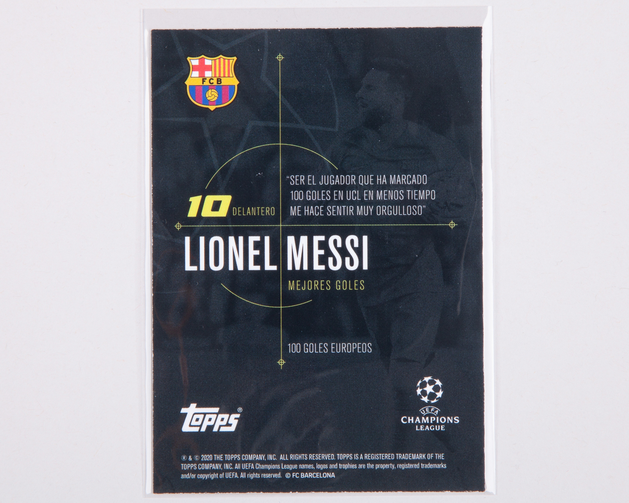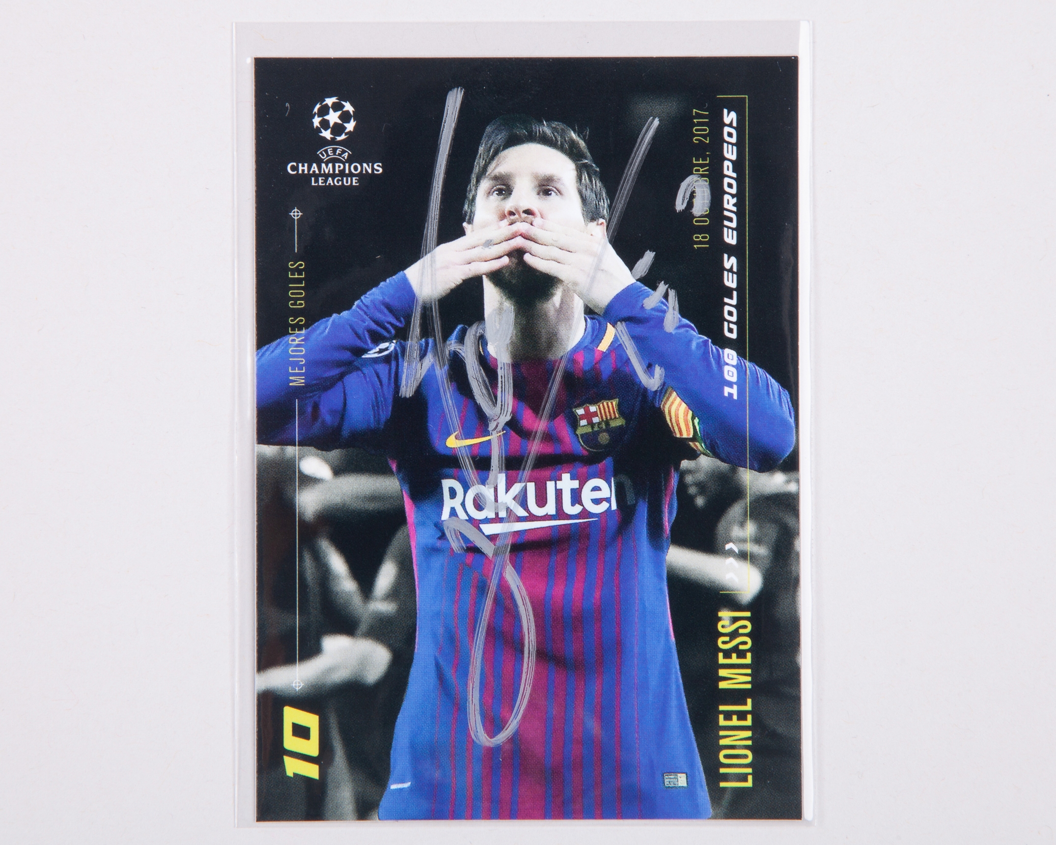 Lionel Messi autographed Barcelona Champions League Topps Mejores Goles trading card, 18th October 2017
