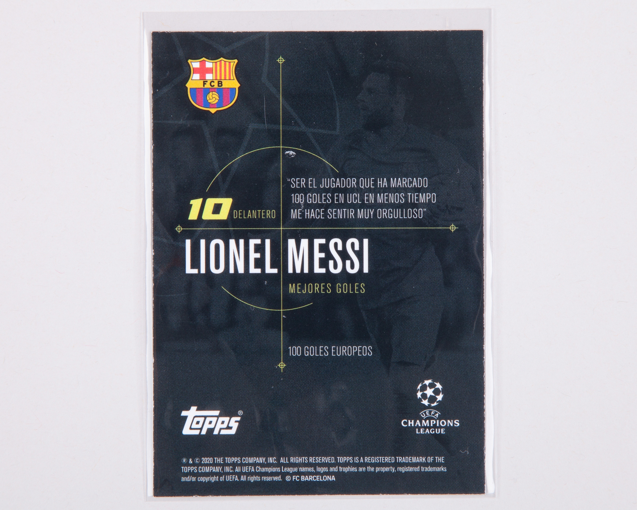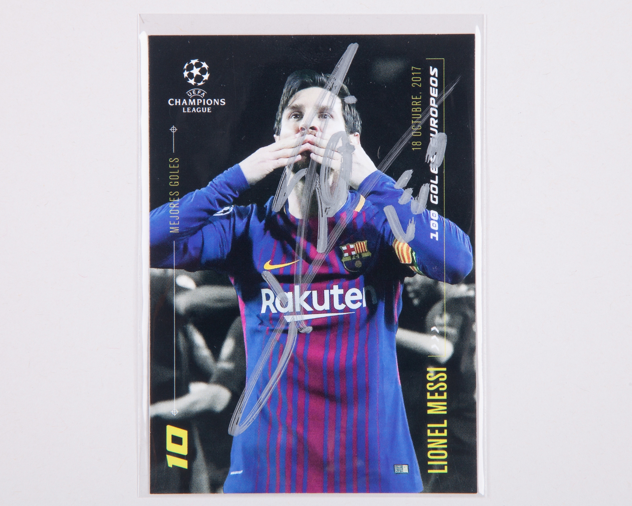 Lionel Messi autographed Barcelona Champions League Topps Mejores Goles trading card, 18th October 2017