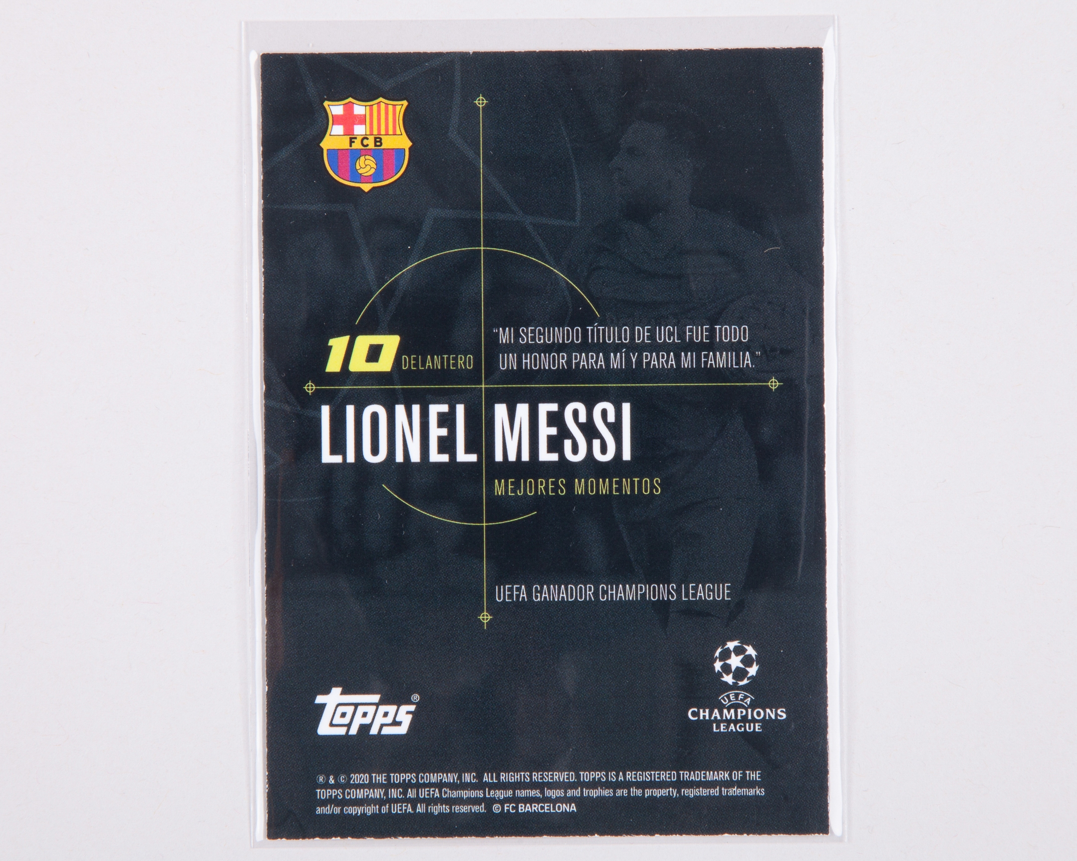 Lionel Messi autographed Barcelona Champions League Topps Mejores Momentos trading card