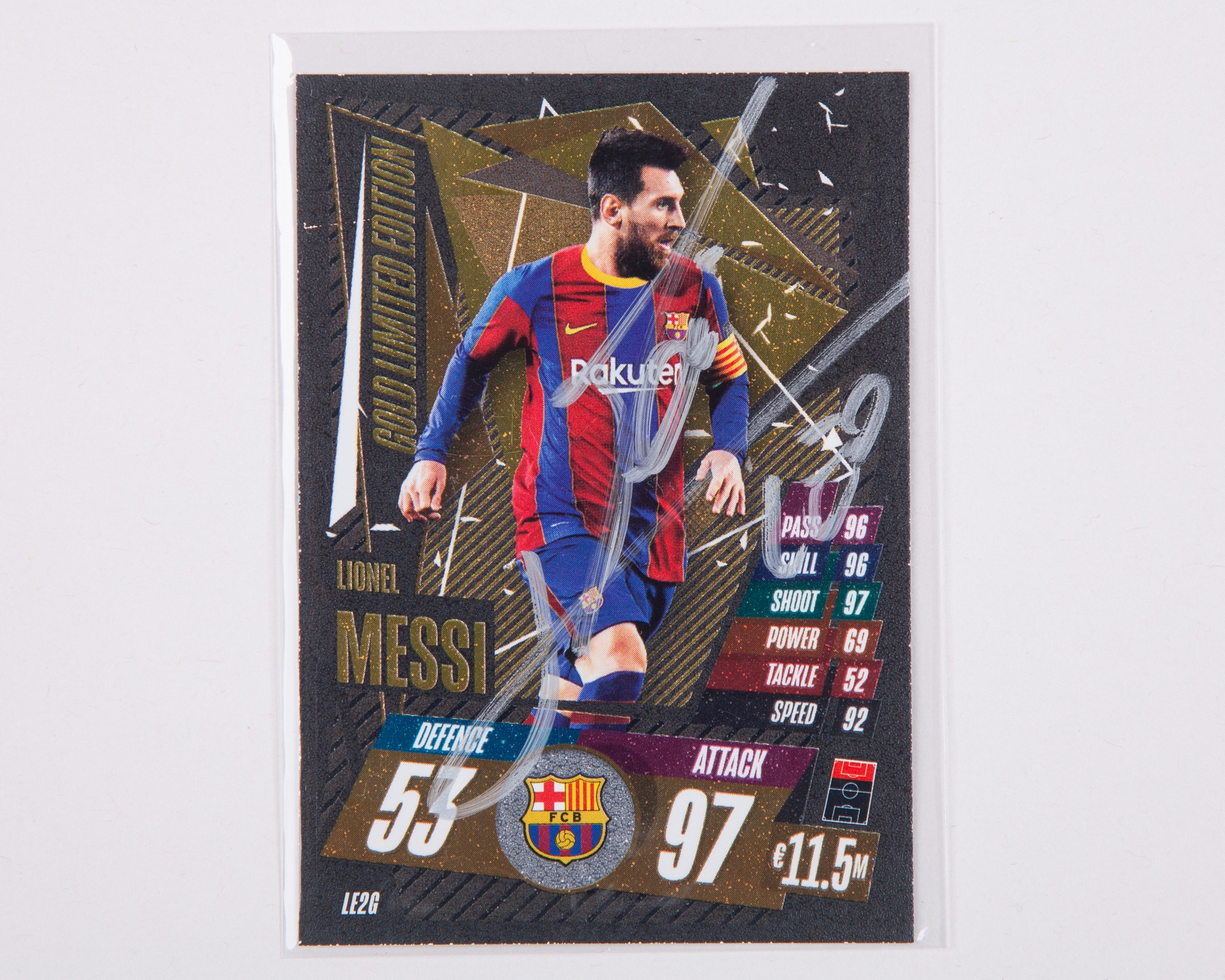 Lionel Messi autographed Barcelona Topps Match Attax Gold Limited Edition trading card