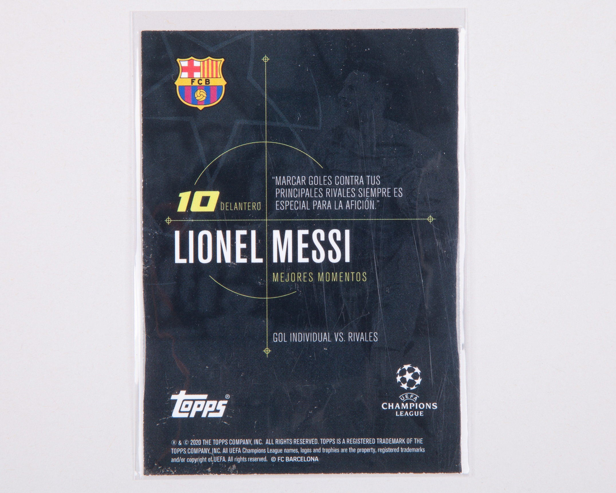 Lionel Messi autographed Barcelona Champions League Topps Mejores Momentos trading card